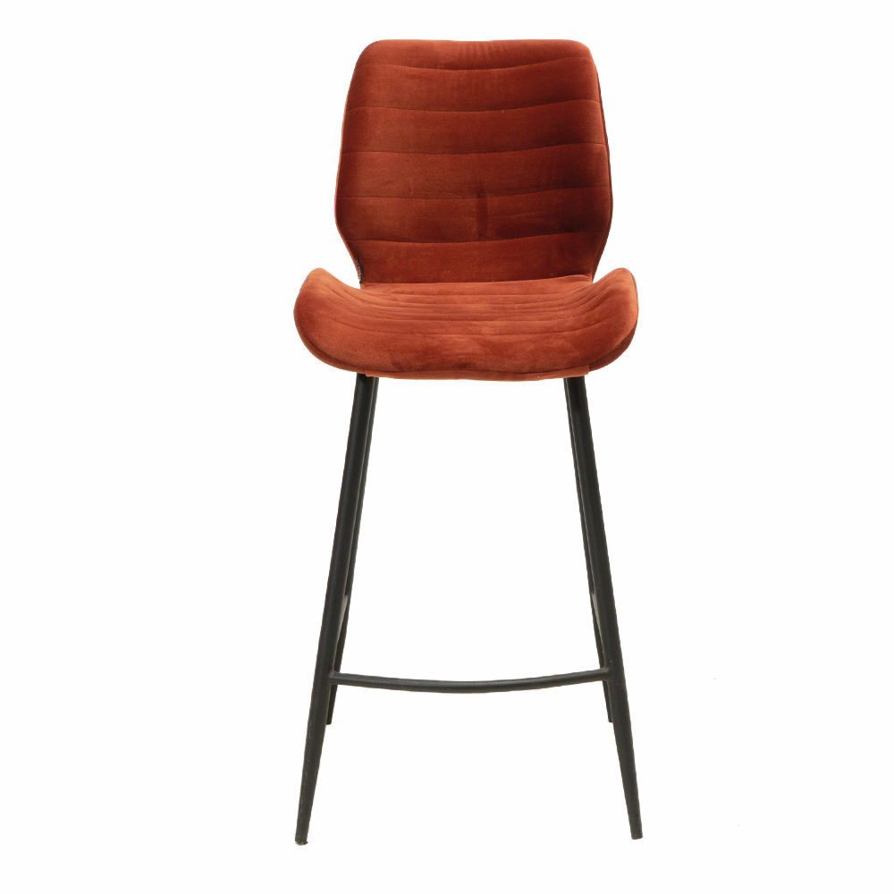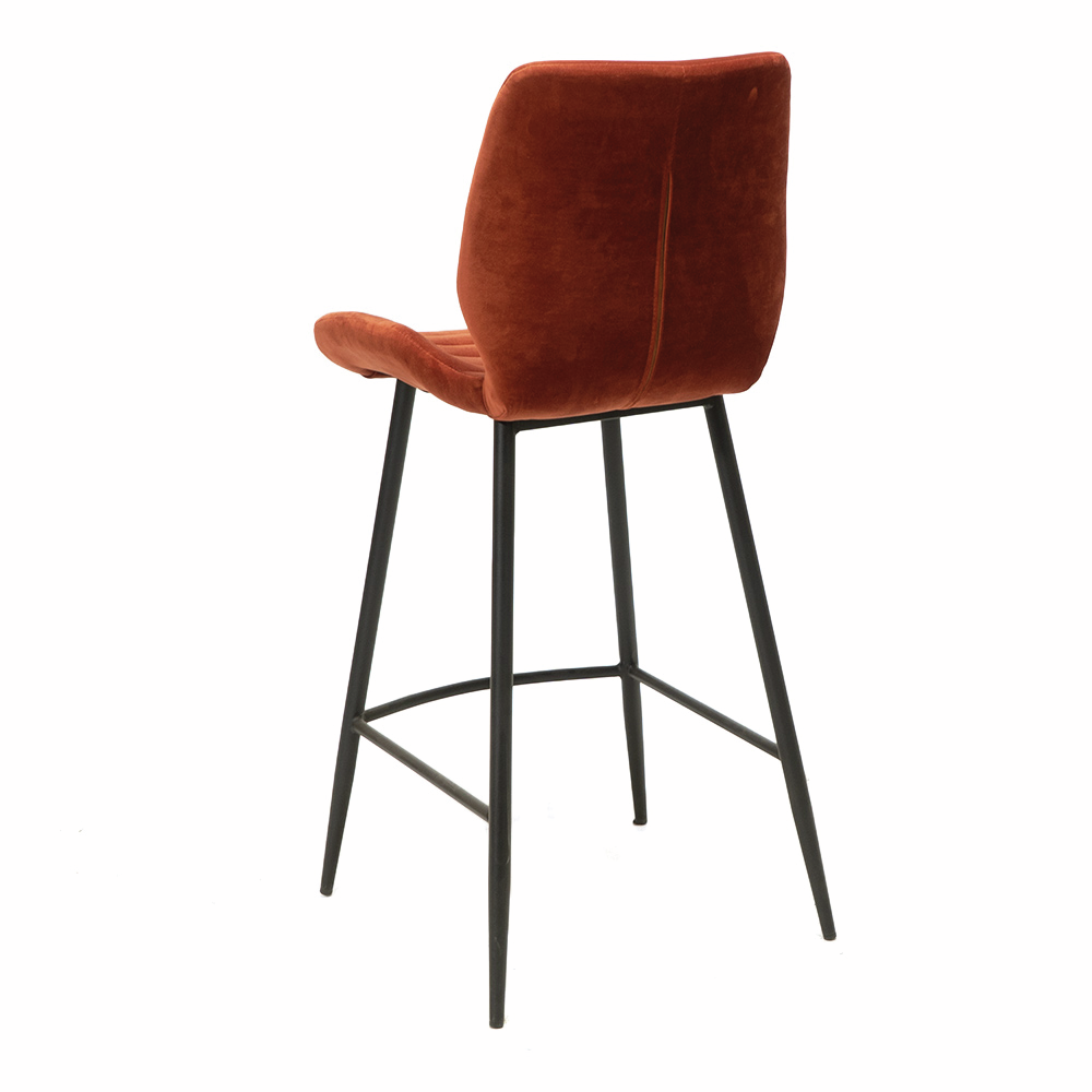 Mit stilvollem Design im modernen Look ist der Barhocker Step 2V eine Bereicherung für die Küchentheke. Dekorative Details wie horizontale Ziernähte an der Rückenlehne machen ihn zum Highlight in jeder Einrichtung. Die hohen Stuhlbeine setzen einen zusätzlichen Designakzent und sorgen gleichzeitig für Standfestigkeit. Einen angenehmen Komfort bietet der Barstuhl durch seine geschlossene Rückenlehne und weiche Sitzfläche. Um die Füße entspannt abzulegen, ist er mit einer umlaufenden Fußstütze ausgestattet. Sitz und Rückenlehne sind mit einem Samtstoff bezogen, der wasserabweisende und pflegeleichte Eigenschaften hat. Für die Umsetzung individueller Einrichtungsideen steht der Küchenstuhl in mehreren attraktiven Farbvarianten zur Auswahl.