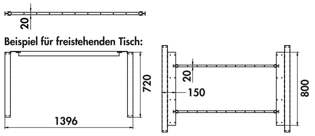 - für Gesamttischlänge 1596 mm (inkl. 2 Kufen)