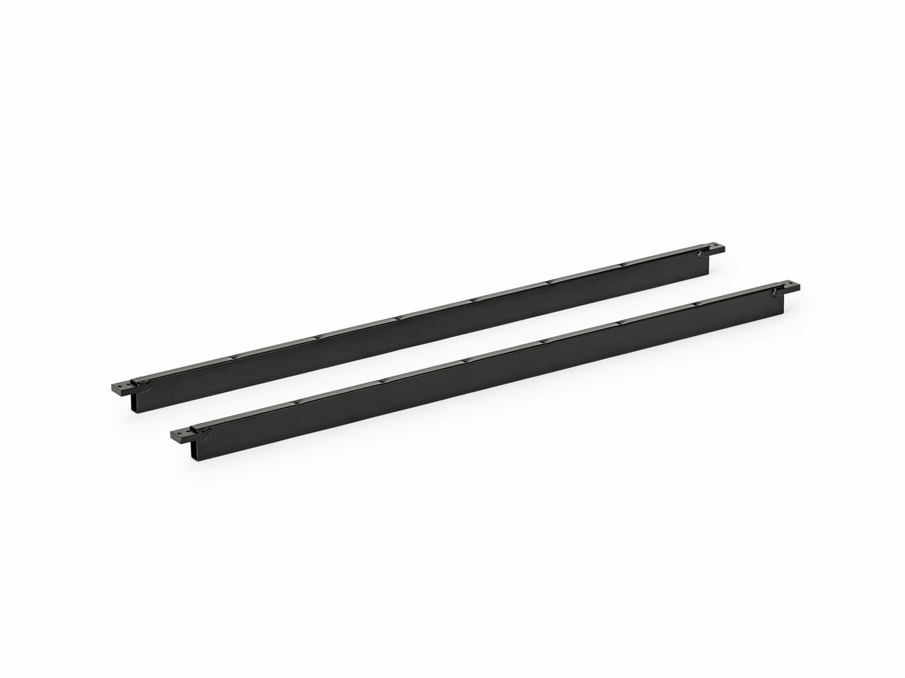 Bestehend aus 2 Traversen zur Stabilisierung der Tischplatte, Stahlrohr, 50 x 20 mm, pulverbeschichtet, schwarz matt. Setweise verpackt.