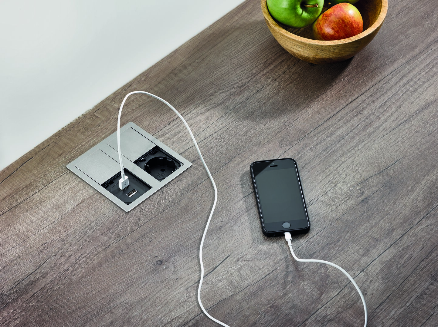 Als dekorativ und praktisch zugleich erweist sich die Einbausteckdose Plaza 2 USB A/C mit ihrem designten Gehäuse. Neben den optischen und funktionalen Aspekten punktet das Steckdosenelement durch die geringe Einbautiefe, die zahlreiche Installationsmöglichkeiten eröffnet. Dazu zählen die Arbeitsplatte ebenso wie Frontblenden und Seitenwände an den Küchenschränken. Unter dem eleganten Doppelschiebedeckel verbergen sich eine Steckdose sowie ein USB-Anschluss des Typs A und eine Anschluss des Typs C. Er bietet einen zuverlässigen Schutz vor Staub und Spritzwasser entsprechend der Schutzklasse IP54. Hinzu kommt ein erhöhter Berührungsschutz für noch mehr Sicherheit. Die beiden Abdeckungen werden separat voneinander durch einen leichten Druck geöffnet. Im Anschluss können einzelne Küchenhelfer mit Strom versorgt und gleichzeitig Mobiltelefone und Tablets geladen und genutzt werden. Zur Gesamtausstattung gehört ein lose beigelegter Schuko-Stecker sowie eine Netzanschlussleitung. Bei den Abdeckungen kann passend zur Küchenarchitektur zwischen verschiedenen Farbausführungen gewählt werden.