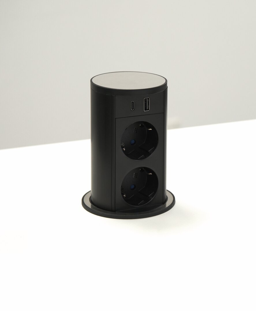Steckdosenelement. Versenkbar. Mit 2 Steckdosen und USB A/C Charger für Hängeschränke oder Arbeitsplatten.