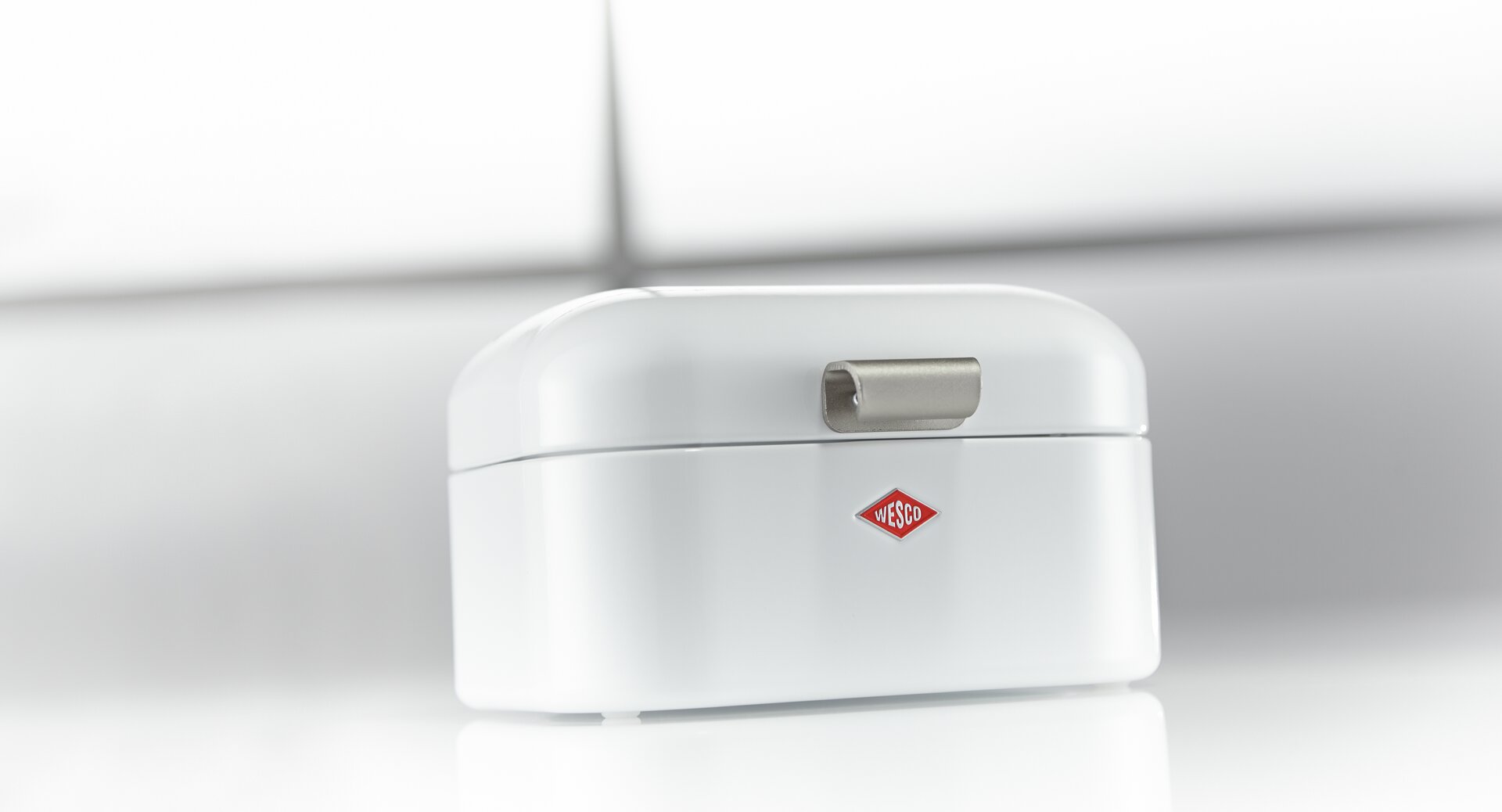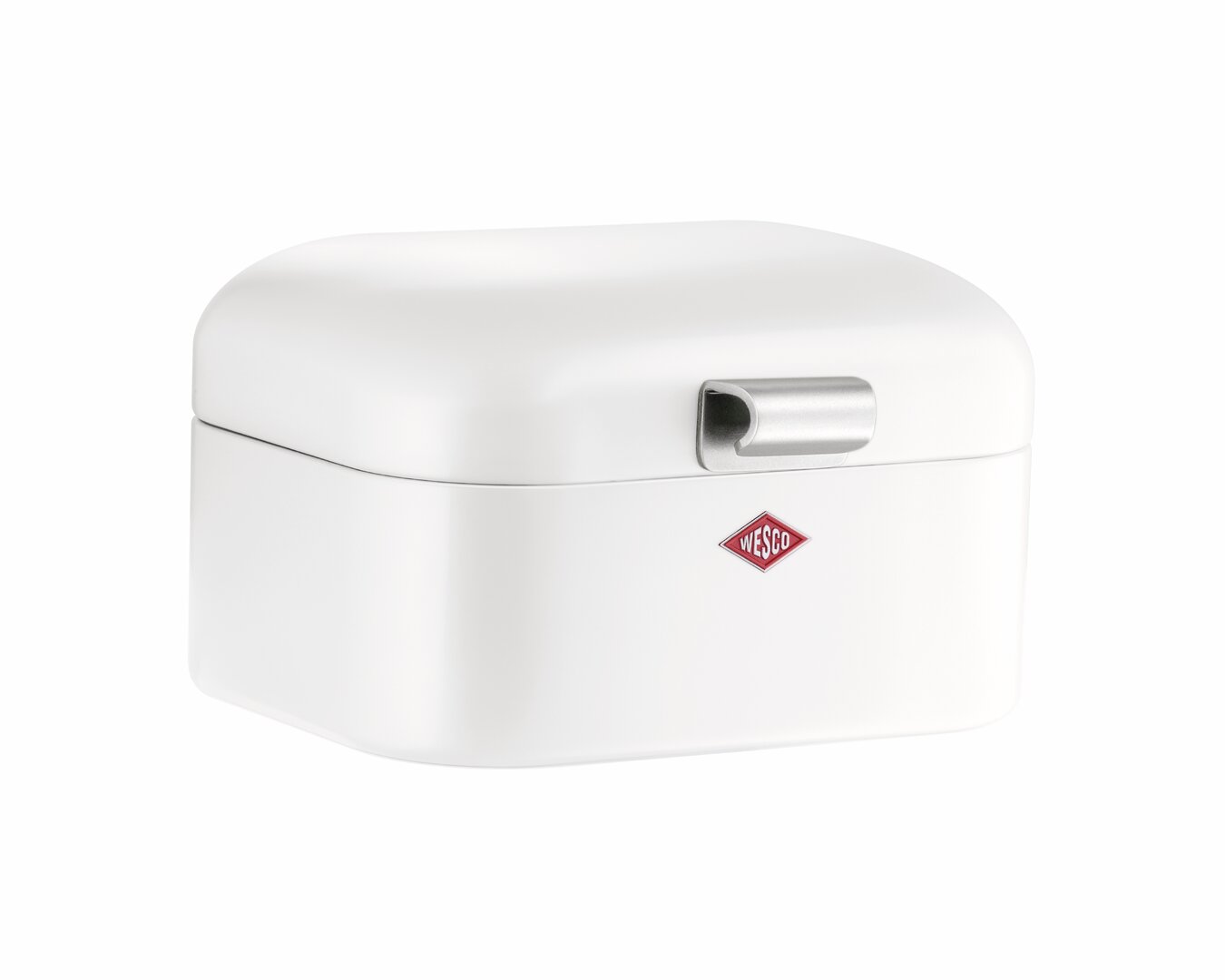 Dank seiner Lüftungslöcher auf der Rückseite kann der Mini Grandy® sogar als Gebäckdose genutzt werden. Stabile Metallscharniere und der Griff aus Metall machen den kleinen Kasten unverwüstlich. Die Vorratsdose im klassischen Retro-Stil gibt es in vielen bunten Wesco-Farben.