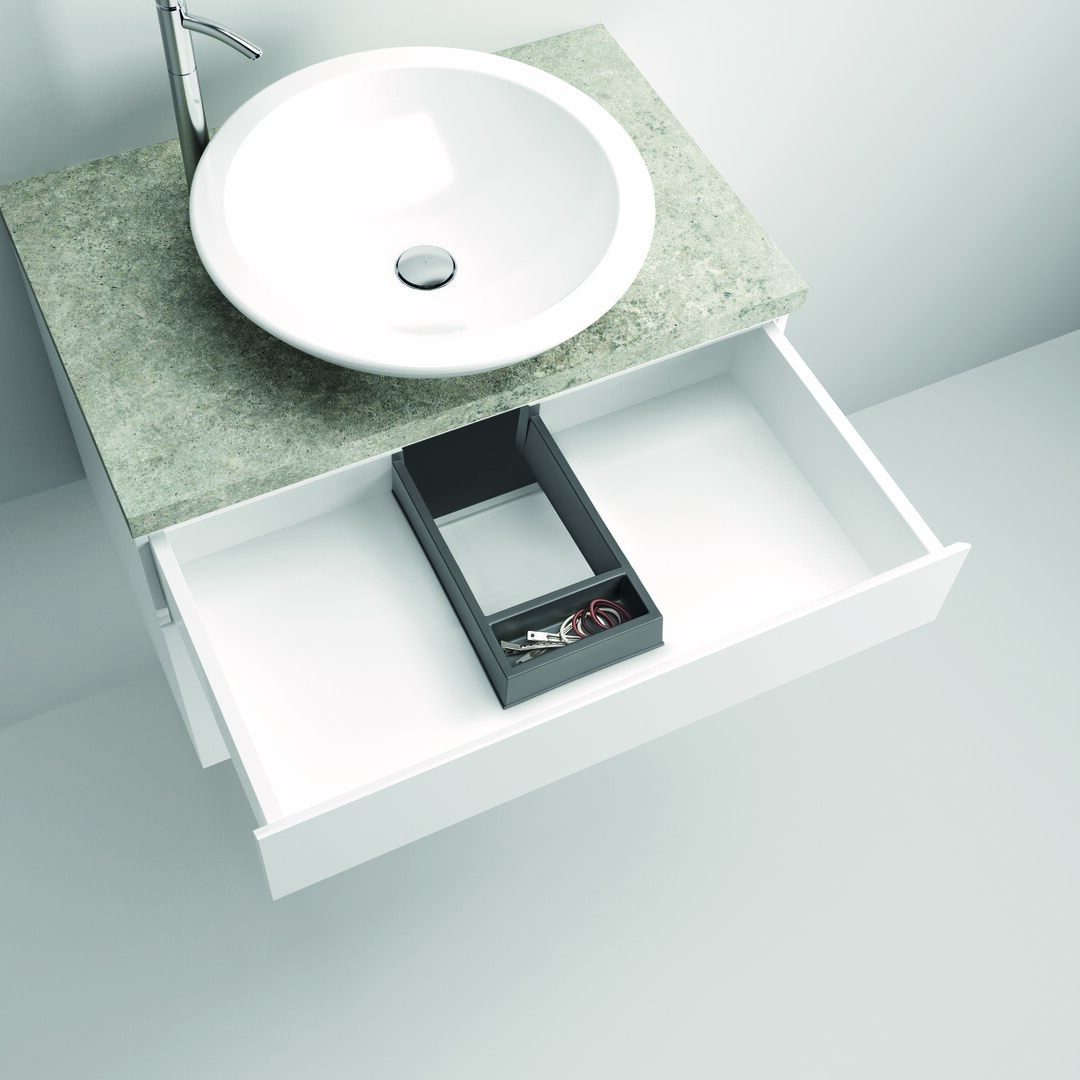 Der Siphonschutz Passo 2 mit kleiner Ablage dient zur Abdeckung des Siphonausschnittes und eröffnet zusätzliche Stauraummöglichkeiten unterhalb des Waschtisches. Zur Ausstattung gehört eine kleine Ablageschale, die zur ordentlichen Aufbewahrung von Kleinteilen verwendet werden kann. Hergestellt ist die Siphonabdeckung aus langlebigem und unempfindlichem Kunststoff. Mit ihrem schlichten Design lässt sie sich in sämtliche Waschtischschubladen integrieren.
