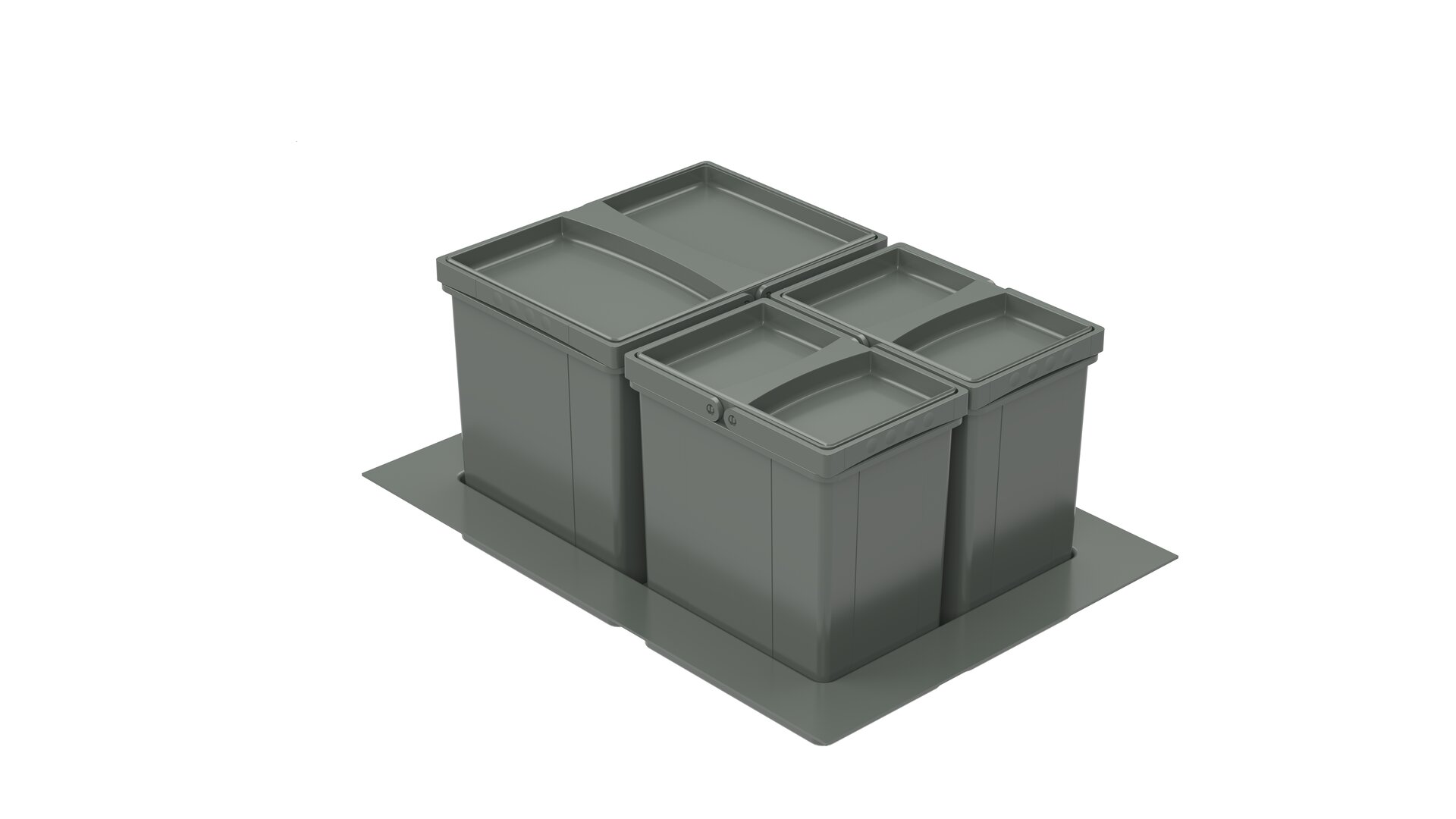 Der Abfallbehälter Pullboy Versa 265 K/600-3 ergänzt das Abfallsystem und dient zur Aufbewahrung und Trennung von Haushaltsabfällen und Wertstoffen. Er ist zur Montage auf vorhandenen Auszügen vorgesehen, womit er sich mühelos im Küchenschrank einbauen lässt. Um den Müll leicht zu sortieren und sammeln, besitzt das Mülltrennungssystem drei Behälter mit einem Gesamtvolumen von 29 Litern. Während die beiden kleineren Mülleimer ein Fassungsvermögen von je 7 Litern haben, beträgt das Abfallvolumen des größeren Innenbehälters 15 Liter. Die Einzeldeckel verschließen die Abfalleimer zuverlässig und bieten einen Schutz vor unangenehmen Gerüchen. Auf Wunsch kann ein Gesamtdeckel platzsparend hinter der oberen Front montiert werden. Um ein Verrutschen und Verschmutzungen im Boden zu verhindern, ist der Einbau-Abfalleimer mit einer Bodenwanne ausgestattet.