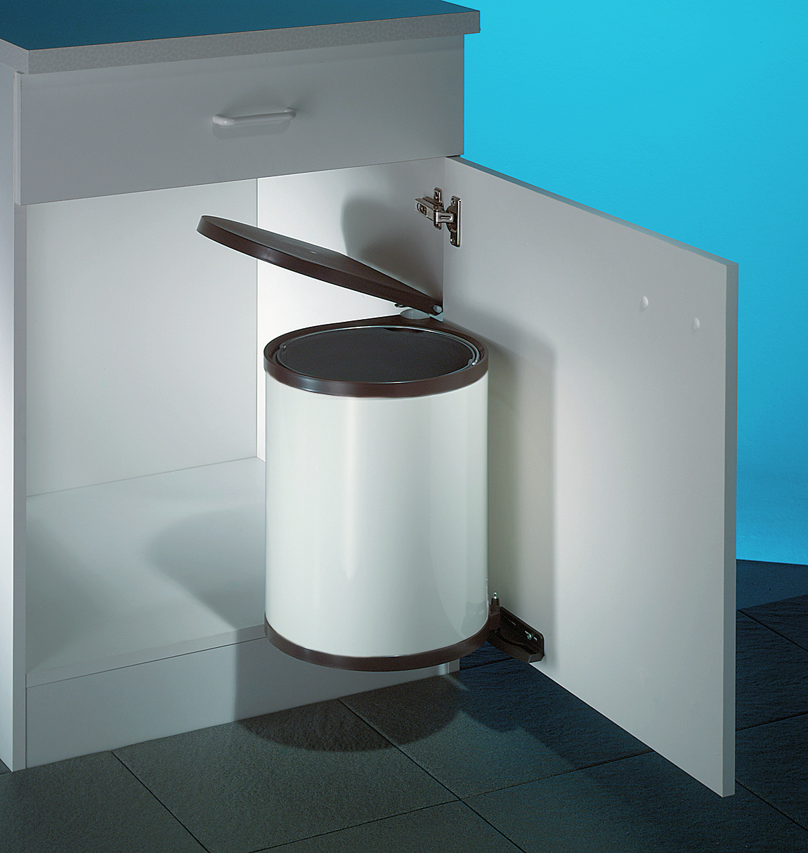 Der runde Schwenk-Abfallsammler Rondo 2 eignet sich hervorragend für den Einsatz in Drehtürschränken. Alternativ lässt er sich ebenso einfach in andere Schränke mit einer Breite von mindestens 400 mm einbauen. Der dazugehörige Abfalleimer bietet ein angemessenes Gesamtvolumen von 13 Litern. Unkompliziert lässt sich dieser mit nur einem Handgriff aus der Halterung entnehmen und dank des integrierten Tragebügels einfach transportieren. Hierfür muss lediglich die Schranktür geöffnet werden, alles andere erledigt die Schwenktechnik. Weitere Pluspunkte, die für das Modell sprechen, sind eine hohe Verarbeitungsqualität sowie die verschiedenen zur Auswahl stehenden Farbausführungen. Die Montage erfolgt sowohl an der Schrankwand als auch an der Fronttür.