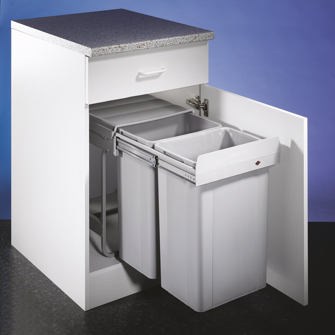 Mit einem großzügigen Abfallvolumen von insgesamt 52 Litern deckt das Mülltrennsystem Big Double kompromisslos den Bedarf von Mehrpersonenhaushalten. Selbst bei geringem Platzangebot kann es eine saubere Mülltrennung ermöglichen. Vorgesehen ist der Abfallsammler speziell zum Einbau in Küchenunterschränke mit Drehtüren. Dabei reicht bereits eine Schrankbreite von 400 mm für den Einsatz aus. Im System sind zwei getrennte und herausnehmbare Abfallbehälter mit einem Volumen von je 26 Litern inbegriffen. Integriert in das Gestell ist eine praktische Abdeckung, welche die Mülleimer im eingeschobenen Zustand verschließt. Zudem punktet der Abfallsammler durch eine komfortable Bedienung, die über einen Vollauszug realisiert wird. Gestell und Führung bestehen aus ebenso leichtem wie stabilem Aluminium. Die Montage des Abfallsystems erfolgt in wenigen Schritten auf dem Schrankboden.