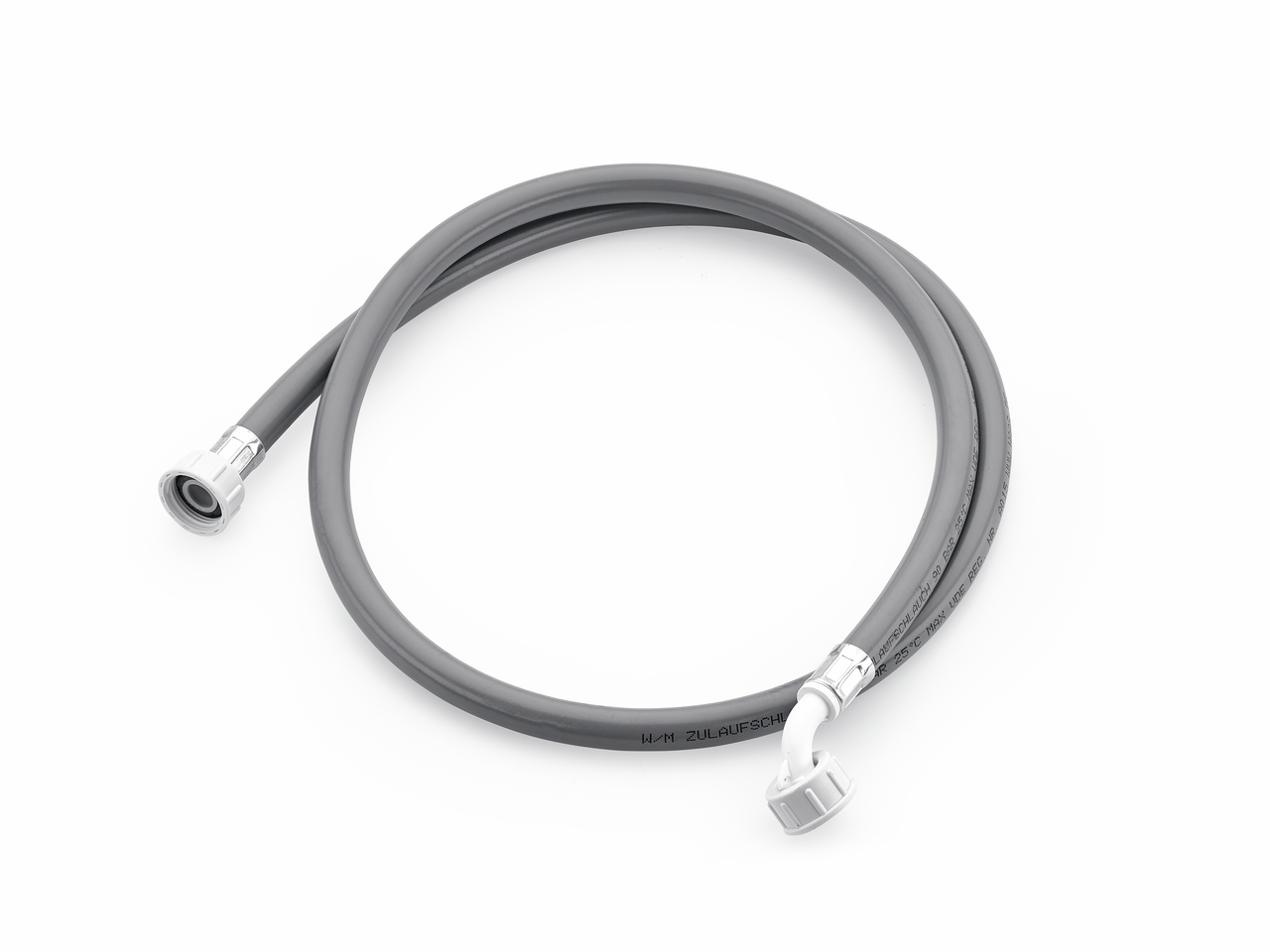 Waschmaschinen-/Spülmaschinenschlauch Zuleitung. Mit einer geraden Verschraubung ¾" und einer Winkelverschraubung ¾", grau, temperaturbeständig bis max. 25 °C, nur für Kaltwasseranschluss.