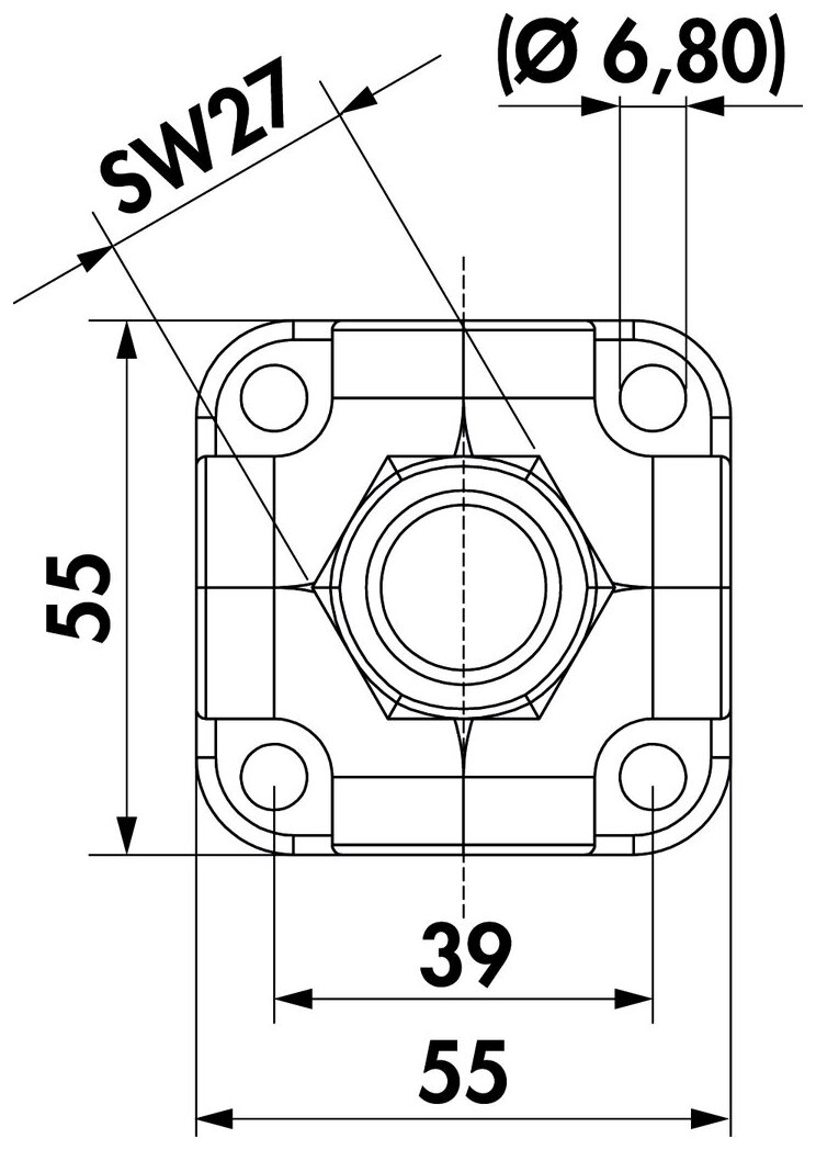 1 x ½“ Innengewinde offen, 3 x ½“ Innengewinde mit Dichtungsstopfen verschlossen