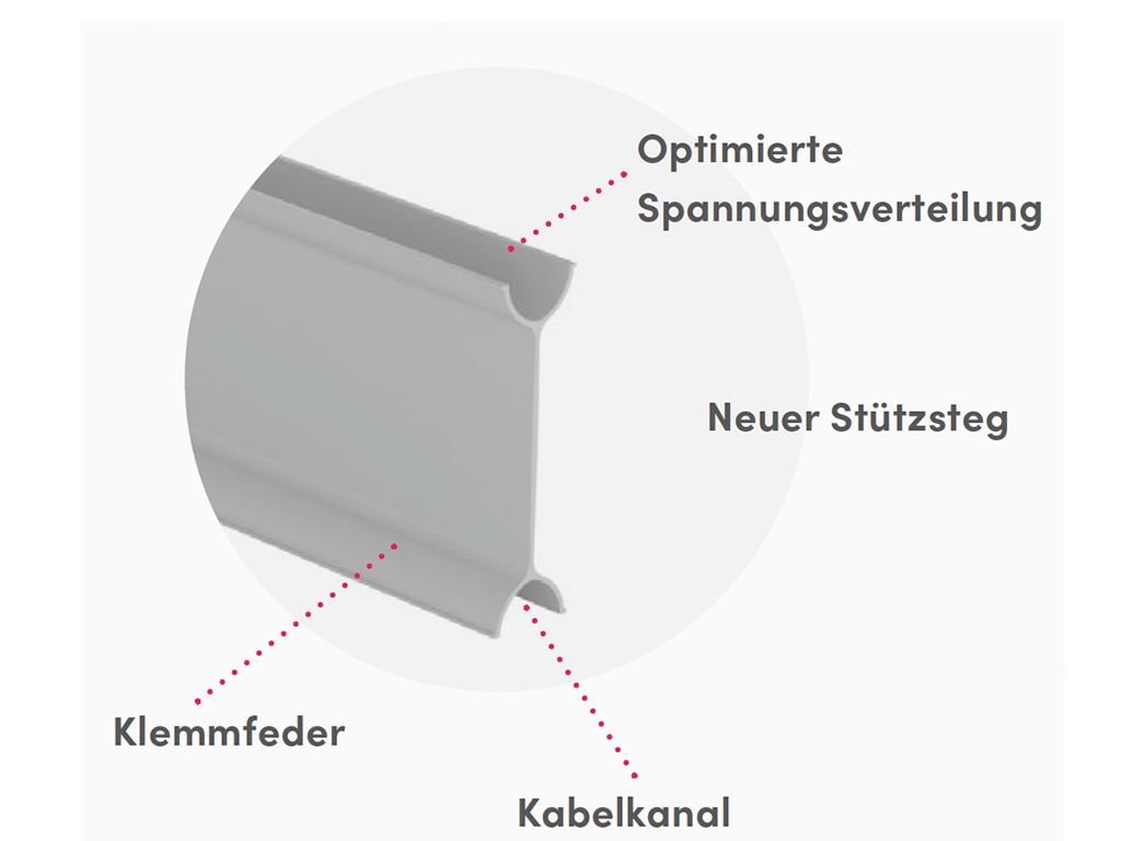 Die Flach- und Rundkanäle von COMPAIR PRIME flow® haben die gewohnten Abmessungen, aber entscheidende Neuheiten: Ihre Rastelemente verankern sich fest in den Aufnahmen der Universalverbinder. Schnell und einfach komplette Baugruppen vorzumontieren funktioniert so kinderleicht. Für einen optionalen Kabelkanal verfügen beide Varianten über eine innenliegende Führungsnut. In die Flachkanäle passt alternativ ein Stützsteg, der die druckfeste Verlegung im Fußboden ermöglicht und zusätzlich als Kabelkanal dient.