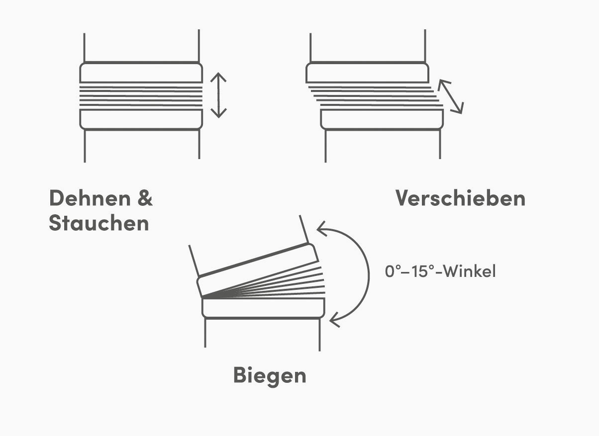 Der Universalverbinder von COMPAIR PRIME flow® schafft das scheinbar Unmögliche: Er macht starre Luftkanäle flexibel, bei gleichzeitig besten aerodynamischen Eigenschaften. Für optimale Energieeffizienz und hohen Verlegekomfort. Das Beste für die Montage ist die in jedem Universalverbinder eingebaute Beweglichkeit. Der flexible Kompensator erlaubt Änderungen in jede Richtung bis 15 Grad. Damit lassen sich leichte Versätze mühelos realisieren.