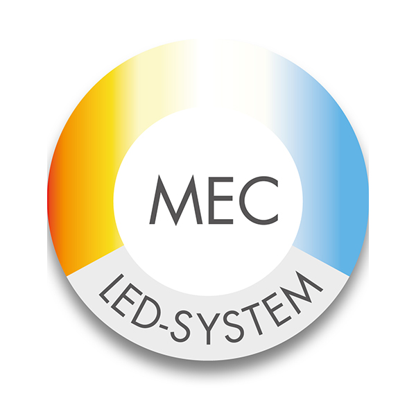Alle mit diesem Zeichen gekennzeichneten Naber Leuchten sind mit Farbwechsel-LEDs ausgestattet. Auf Knopfdruck, per Smartphone oder mit Sprachbefehl ändern sie ihre Lichtfarbe vom gemütlichen, warmweißen Licht über das langfristig angenehme, neutralweiße Licht bis zum konzentrationsfördernden, kaltweißen Licht. Die Leuchten können sowohl mit dem neuen MEC Konverter-System als auch dem bekannten LIC LED-System gesteuert werden.