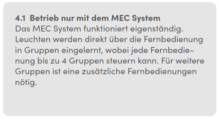 Dank des intelligenten Stecksystems mit dem in vier Leistungsstufen verfügbaren Konverter lässt sich das MEC System mühelos an individuelle Anforderungen anpassen – und das ganz ohne Kabelsalat!