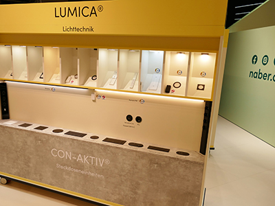 Vor allem die Einbindung der Beleuchtung in Smart-Home-Systeme war ein viel beachtetes und gern diskutiertes Thema. Die von Naber angebotenen technischen Bausteine für individuelle Lichtszenarien begeistern immer wieder durch ihre Übersichtlichkeit und Kompatibilität. Zusammen mit den Leuchten eröffnen sich faszinierende Möglichkeiten, mit Licht das Wohlbefinden der Menschen in ihrem Wohnumfeld zu erhöhen.