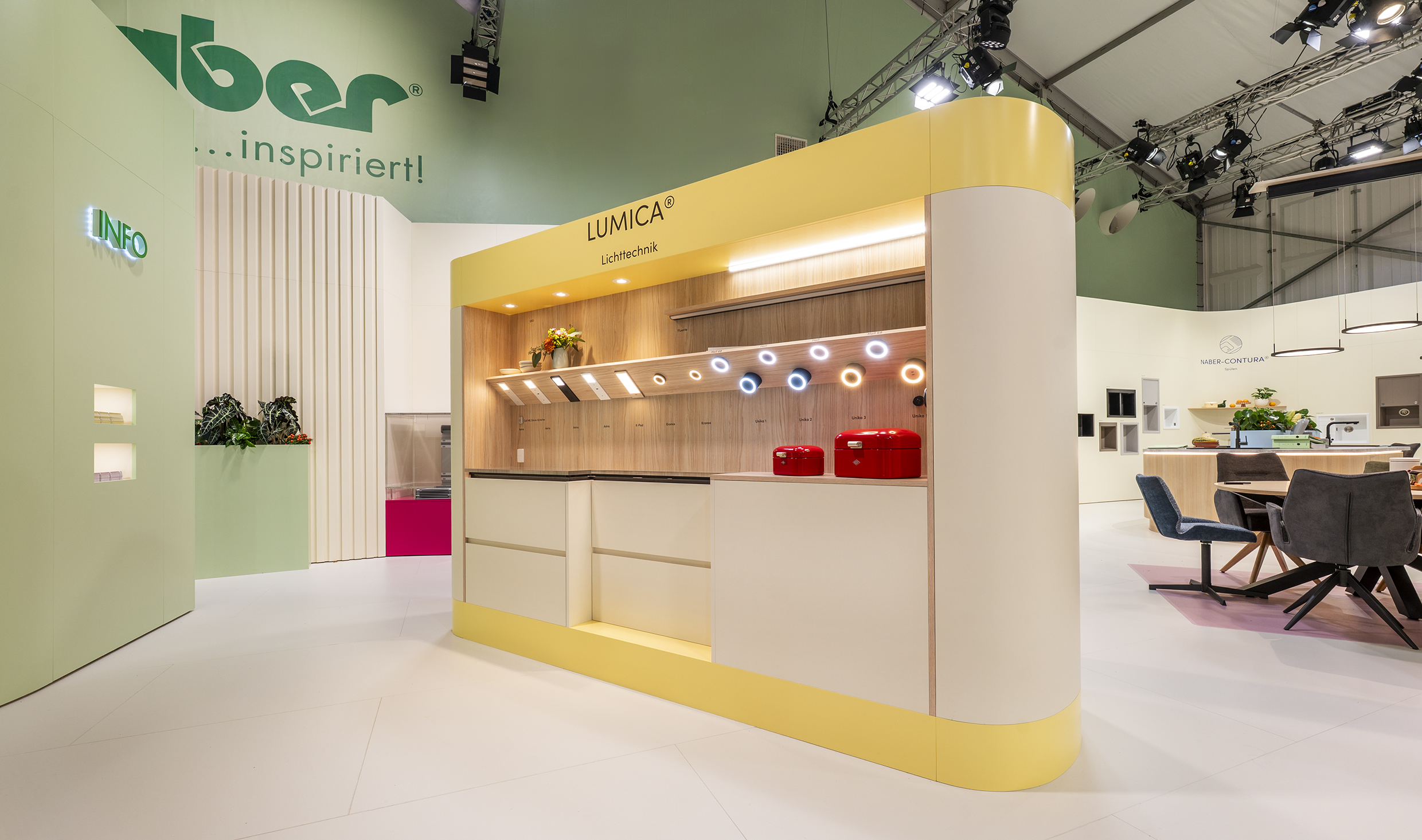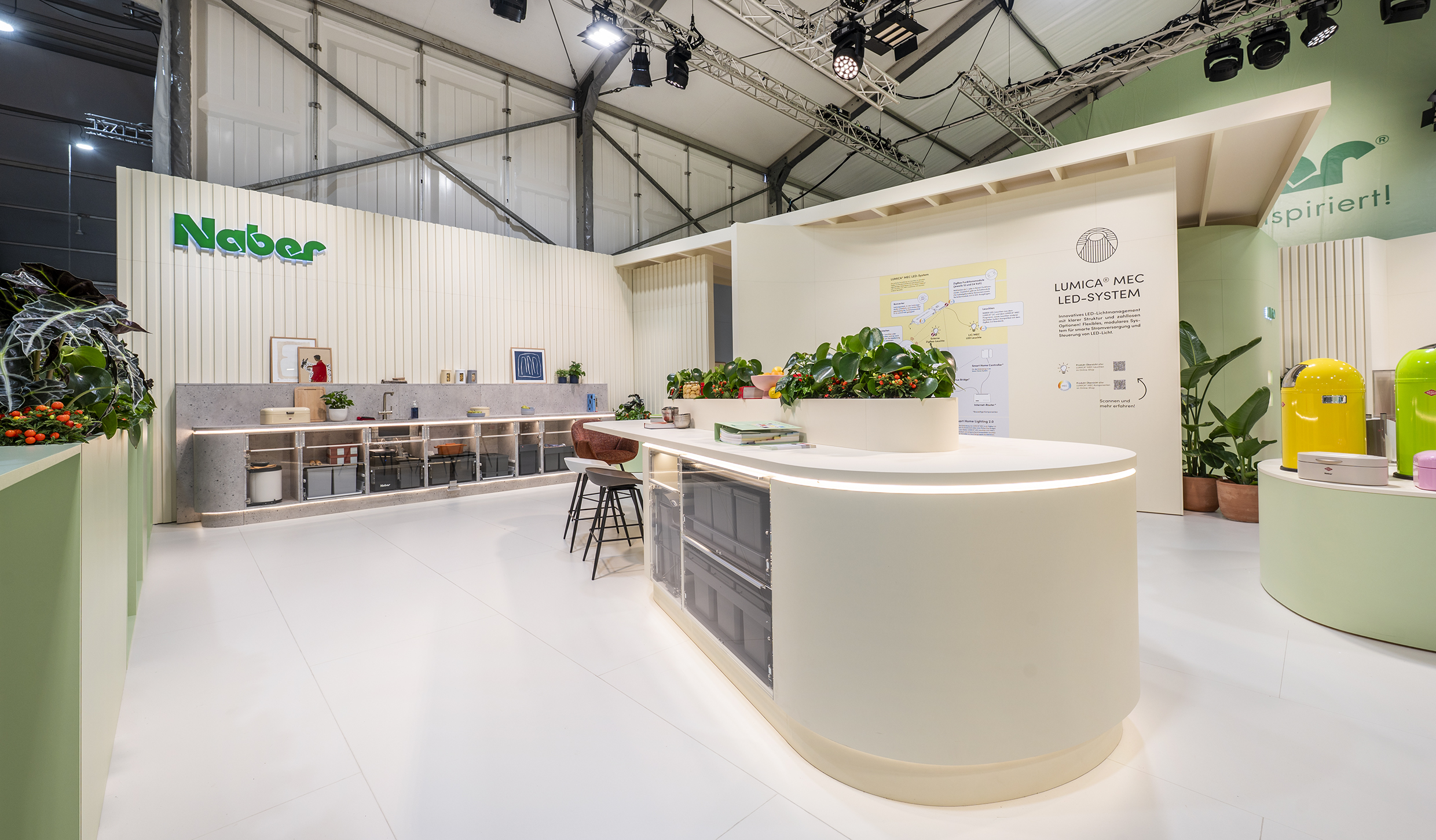 Im Bereich Lichttechnik wurden die faszinierenden neuen LED-Leuchten intensiv begutachtet und besprochen. Außer schicken Aufbau- und Unterbau-Leuchten, unkomplizierten Griffleisten-Leuchten sowie beeindruckenden Spots und Pendelleuchten für das Easytrack-Schienensystem umfasste das Messeprogramm hoch kompatible Konverter. Mit technischen Lösungen von Naber lassen sich individuelle Beleuchtungs-Konzepte trotz ihrer Komplexität vergleichsweise einfach verwirklichen – auch mit Anbindung an ein Smart Home System und integrierter Sprachsteuerung.