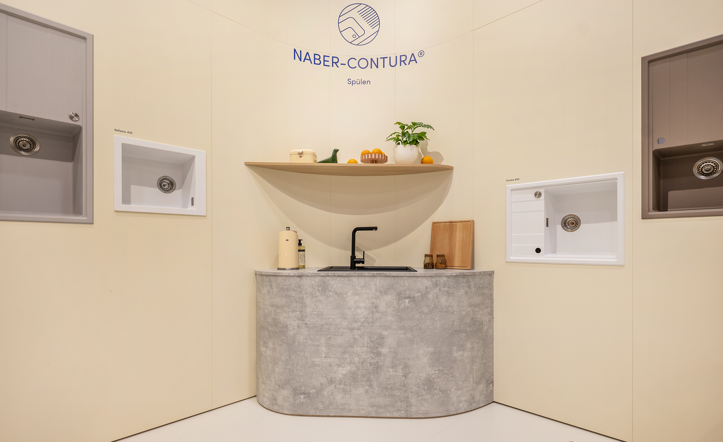 Neben SILQUA vergrößern hochwertige Composite-Einbauspülen das NABER-CONTURA® Sortiment. Diese robuste Materialart mit samtiger Oberfläche ist besonders für Kochendwasser-Armaturen geeignet. Naber hat unterschiedlich große Modelle neu im Programm, die sich zum Teil auch für den flächenbündigen Einbau eignen. Wie SILQUA sind einige davon in faszinierenden neuen Farben erhältlich, darunter marmoriertes Weiß und schimmerndes Braun. Unterbau-Einbauspülen, die den pflegeleichten Composite Werkstoff auf eine charmant zurückhaltende Art neu in Szene setzen, hatten auf der Messe ebenfalls Premiere.