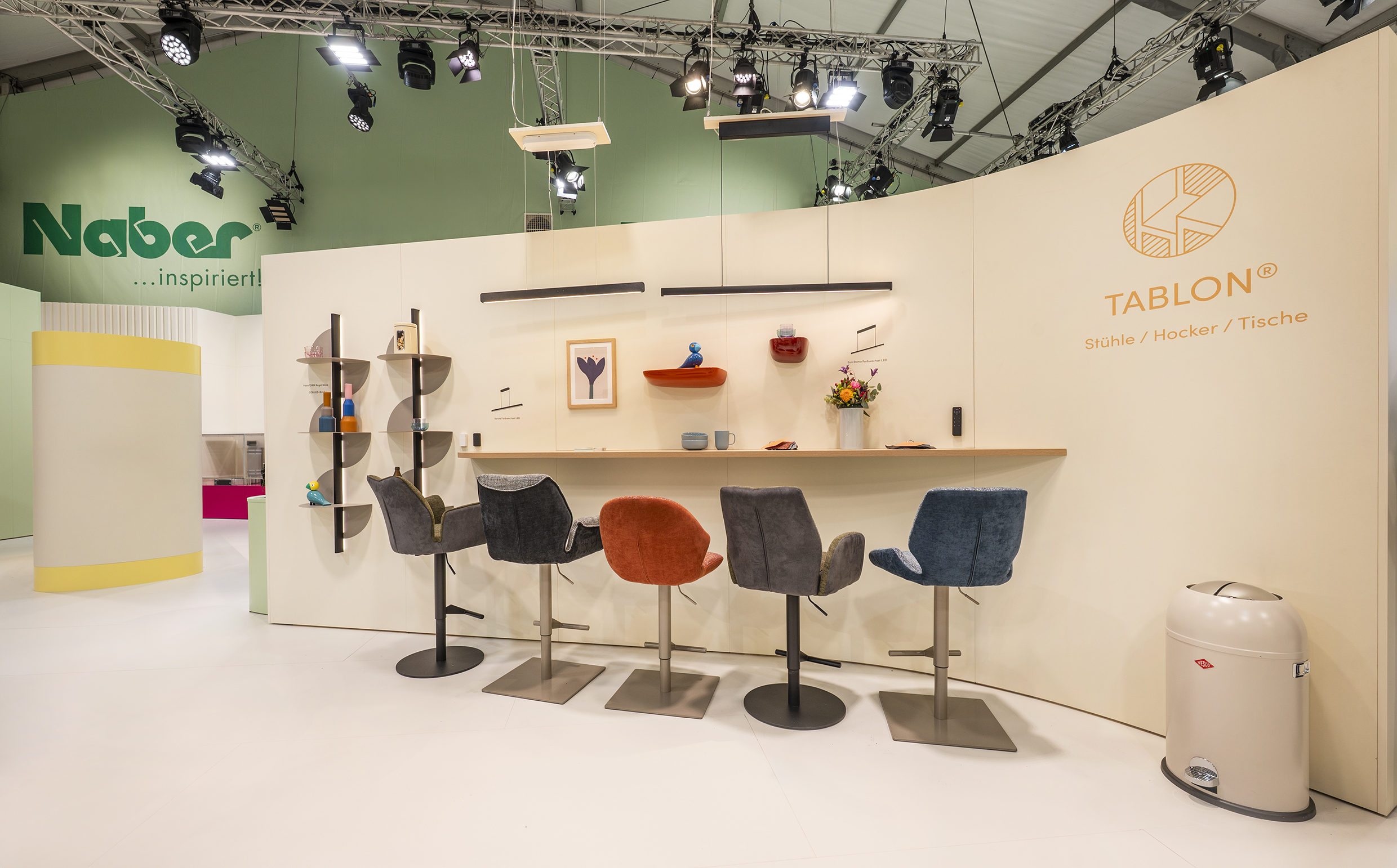 Doppelt erfreulich war die Begegnung zahlreicher area30-Fachbesucher mit den neuen Sitzmöbeln des TABLON® Interieur Programms. Zuerst begeisterte der Anblick des hervorragenden Möbeldesigns, danach das bequeme Sitzen. Die drehbaren sternförmigen Gestelle mit Bezügen in gut kombinierbaren Farben wurden besonders häufig getestet, ebenso die pflegeleichten Bezüge aus recycelten Materialien. Die von Naber präsentierten Möbel inklusive der hochwertigen Tischgestelle verleihen dem Küchen- und Essbereich Charakter und Atmosphäre und fügen sich gut in verschiedene Einrichtungsstile ein.