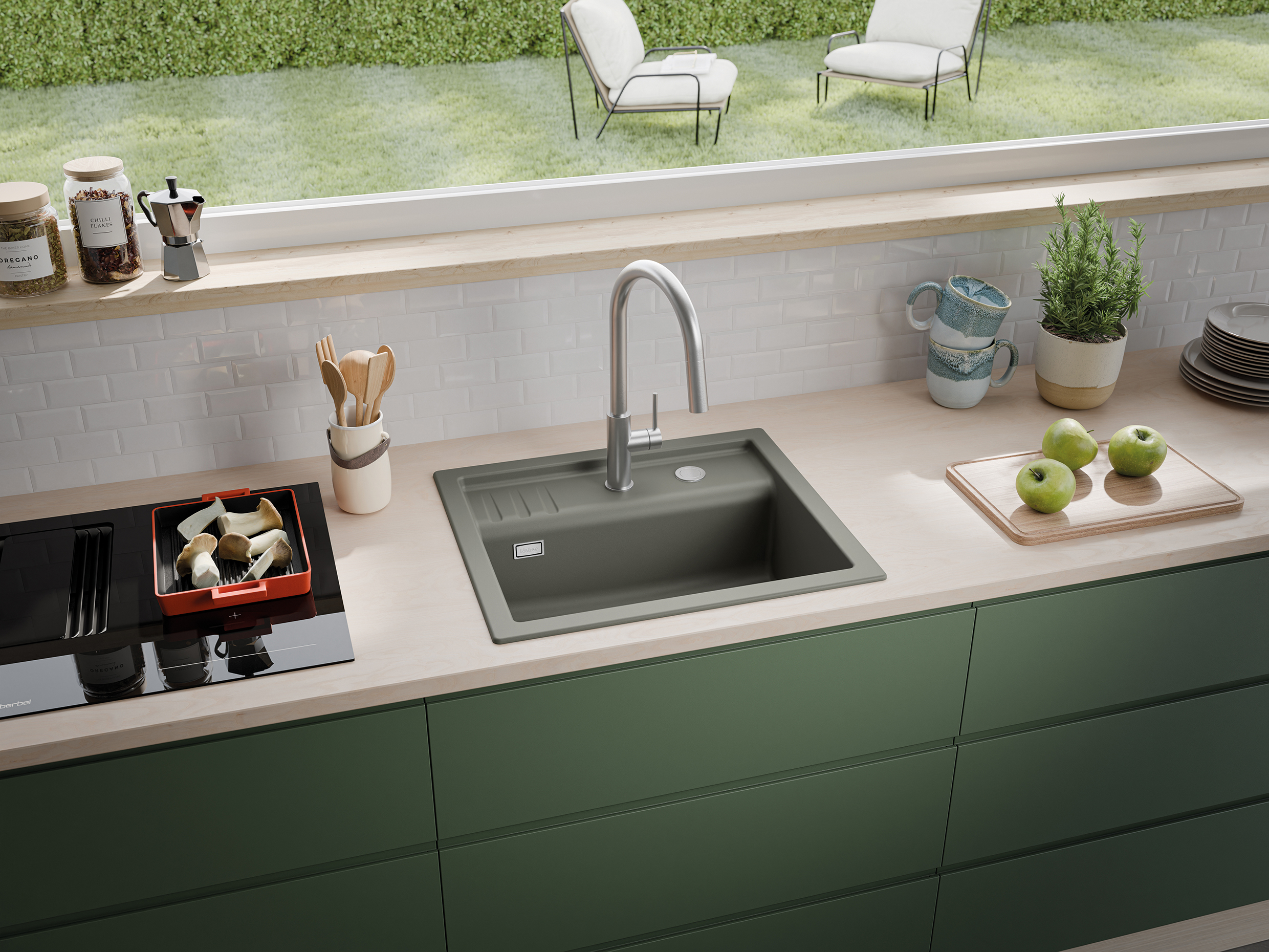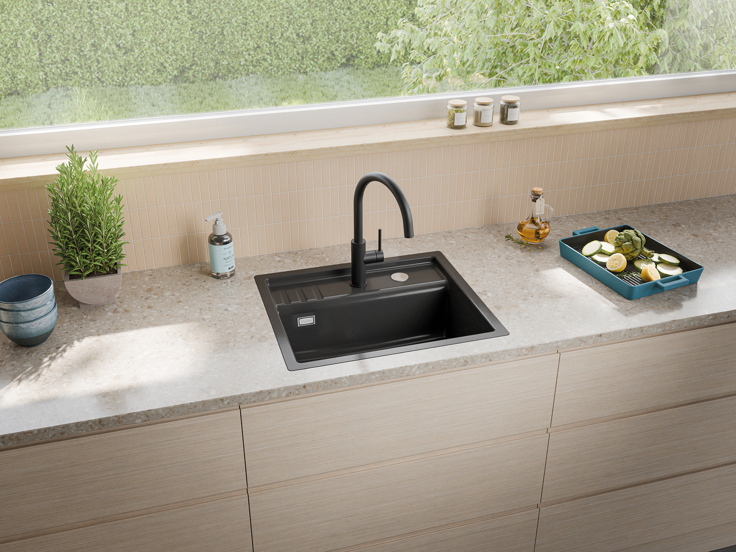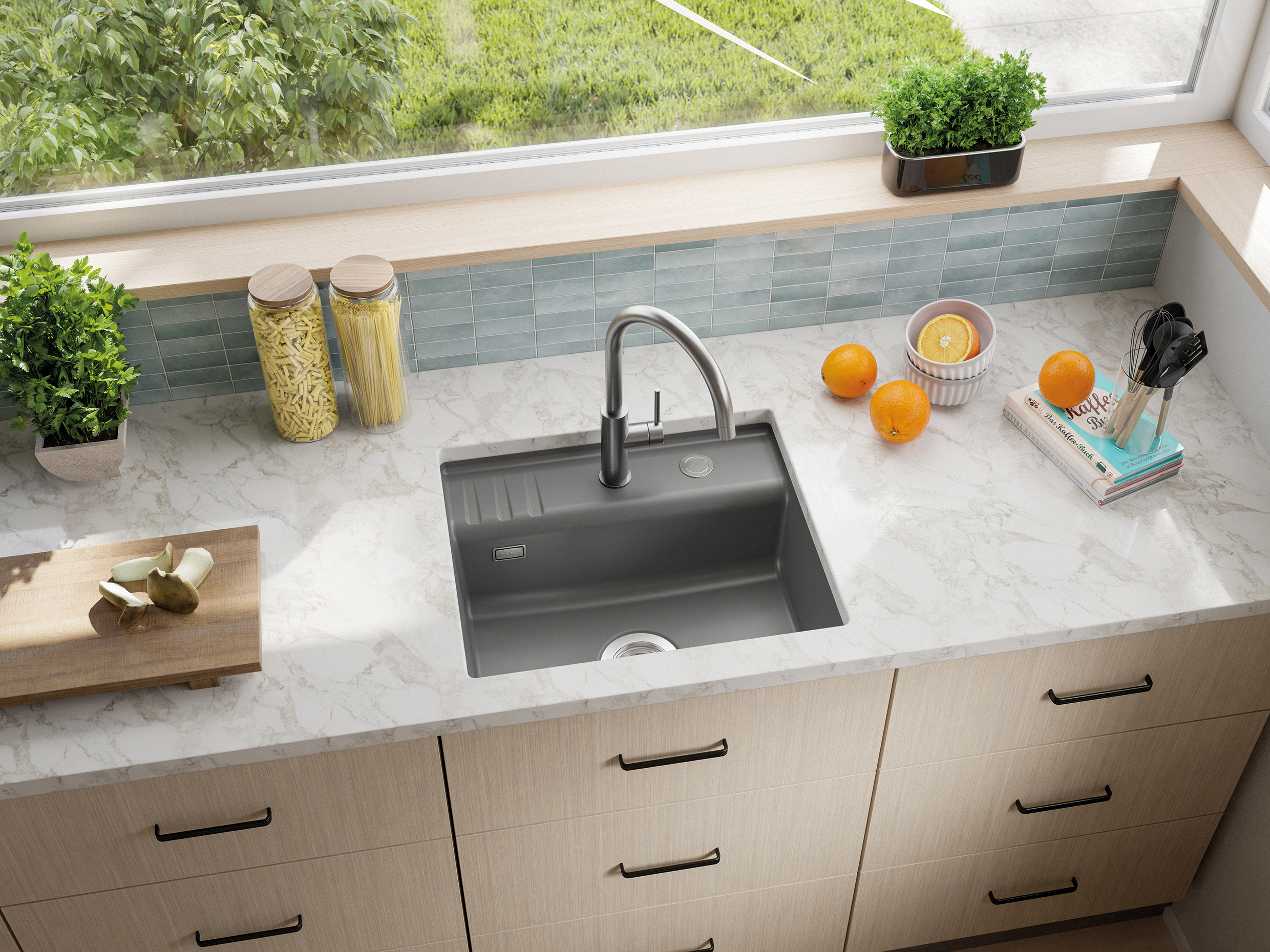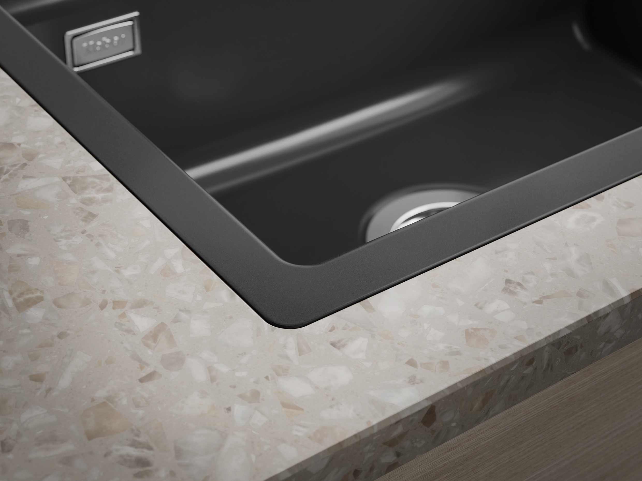 Bei den Keramik-Ausführungen haben Küchenkunden die Wahl zwischen den Farbvarianten Nero, Schiefer, Lava, Weiß matt und Weiß glänzend. Diese Modelle können sowohl aufliegend als auch flächenbündig und in der faszinierenden Unterbau-Variante in die Arbeitsplatte integriert werden. Topaktuelle neue Farbnuancen weisen die Composite-Spülen auf: Die Palette der Granitfarben umfasst sattes Schwarz (granit nero ossidiana), schimmerndes Braun (granit terra di agata), lichtes Grau (granit grigio tormalina) und strahlendes Weiß (granit bianco howlite).