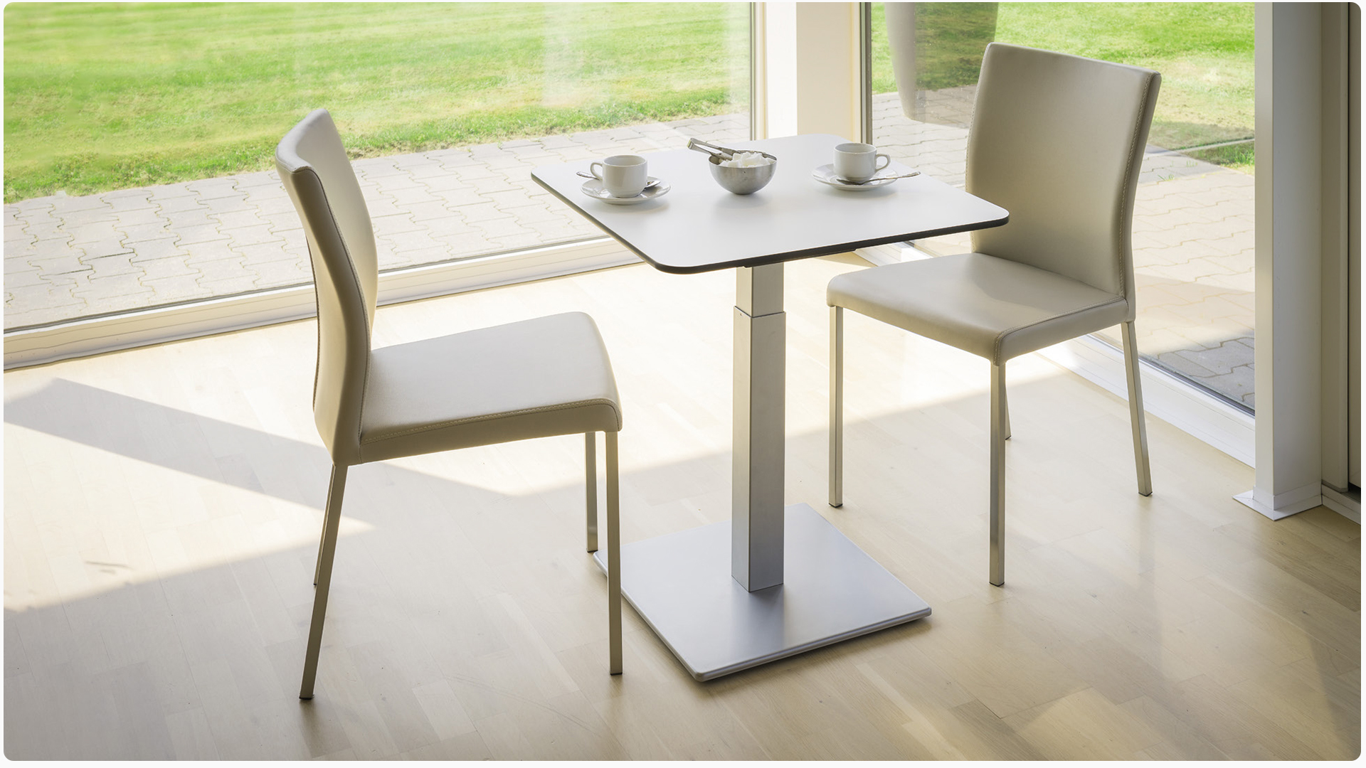 Für das Kaffeetrinken reicht ein niedriger Tisch. Zum bequemen Schreiben oder Lesen kann er ruhig etwas höher sein. Und manchmal wird ein Stehtisch gebraucht. Die Lösung heißt Gliera EHV 1: Das elektrisch höhenverstellbare TABLON® Einsäulen-Tischgestell kommt mit rechteckiger oder quadratischer Bodenplatte und bewegt maximal 50 kg von 55 bis 121 Zentimeter Höhe. Mit der Wahl der dazu passenden Tischplatte entsteht schlichte Eleganz mit maximaler Beinfreiheit! Praktische Ergänzung: die Akkubox zur Höhenverstellung ohne permanente Stromversorgung.