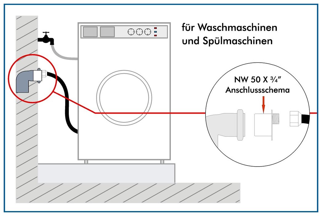For the waste water hose of washing machines or dishwashers