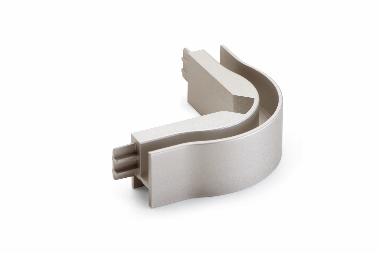 The Andy external angle connects two aluminium rails from the Andy grip rail lighting range and allows a change of direction by 90 degrees. This allows the ambient lighting to be routed around the corner of a kitchen island without interruption. The corner element is made of plastic. Thanks to the integrated tongue and groove, it can be pushed into the open ends of the rails without tools and fixes itself independently.