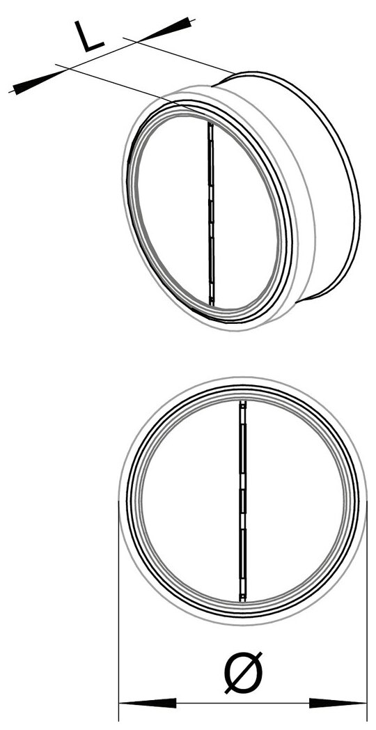 Backpressure shutter round, Ć 125 mm, L 49 mm