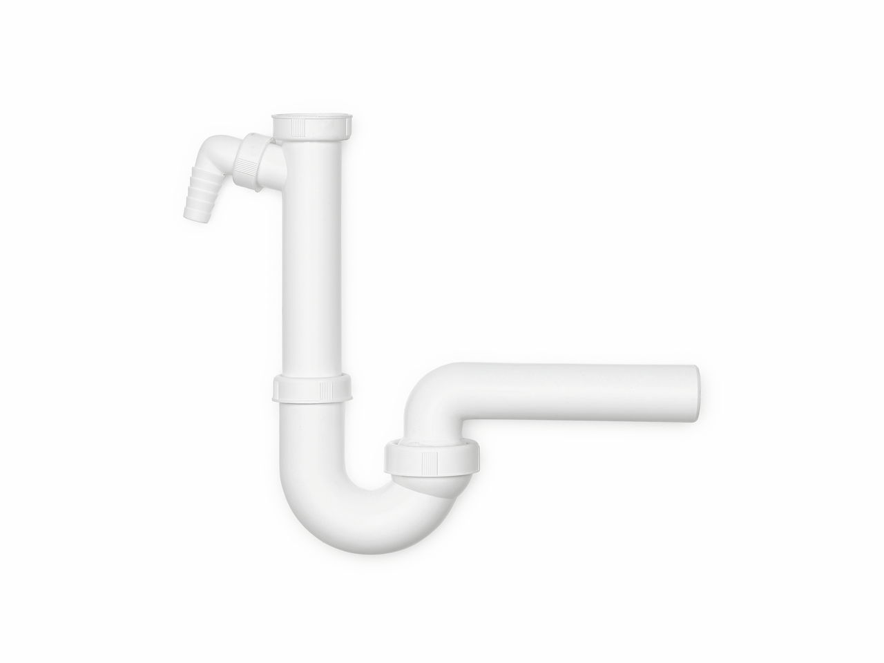 The ball-joint siphon 1 is variable in height and depth. Thanks to this feature, it can be easily connected to the sink even in tight spaces. The second waste water connection of the siphon offers the possibility of connecting the dishwasher or a washing machine.