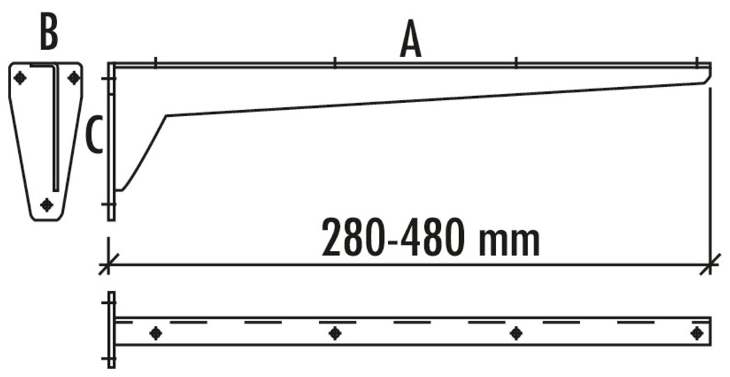 Sturdy sheet-metal construction. Shelf support with welded mounting plate.