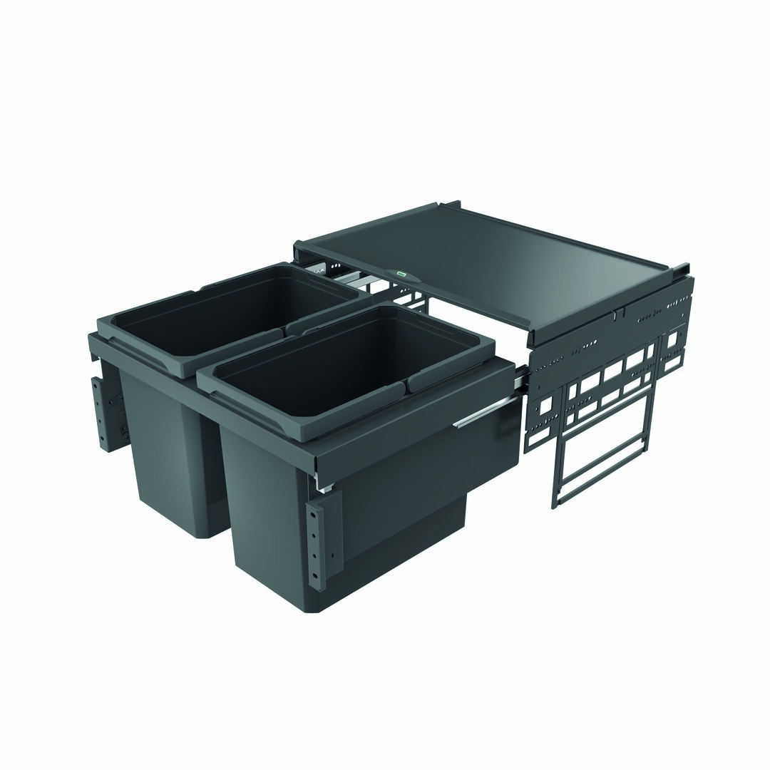The Cox® Base 360 S/600-2 waste separation system is designed for kitchen cabinets with front pull-out, allowing convenient waste disposal without much touching. It provides a large total volume of 44 litres. For individual separation of recyclables, it has two waste bins, each with a generous capacity of 22 litres. The pull-out overall lid closes the waste bin and can be used as an additional storage surface if required. Convenient handling is made possible by the integrated full-extension pull-out, which provides full access to the waste bin. Thanks to the soft pull-in and the stop damping, the pull-in is quiet and gentle. The waste separation system has a quick&easy mounting frame for precise and uncomplicated installation on the wall unit.