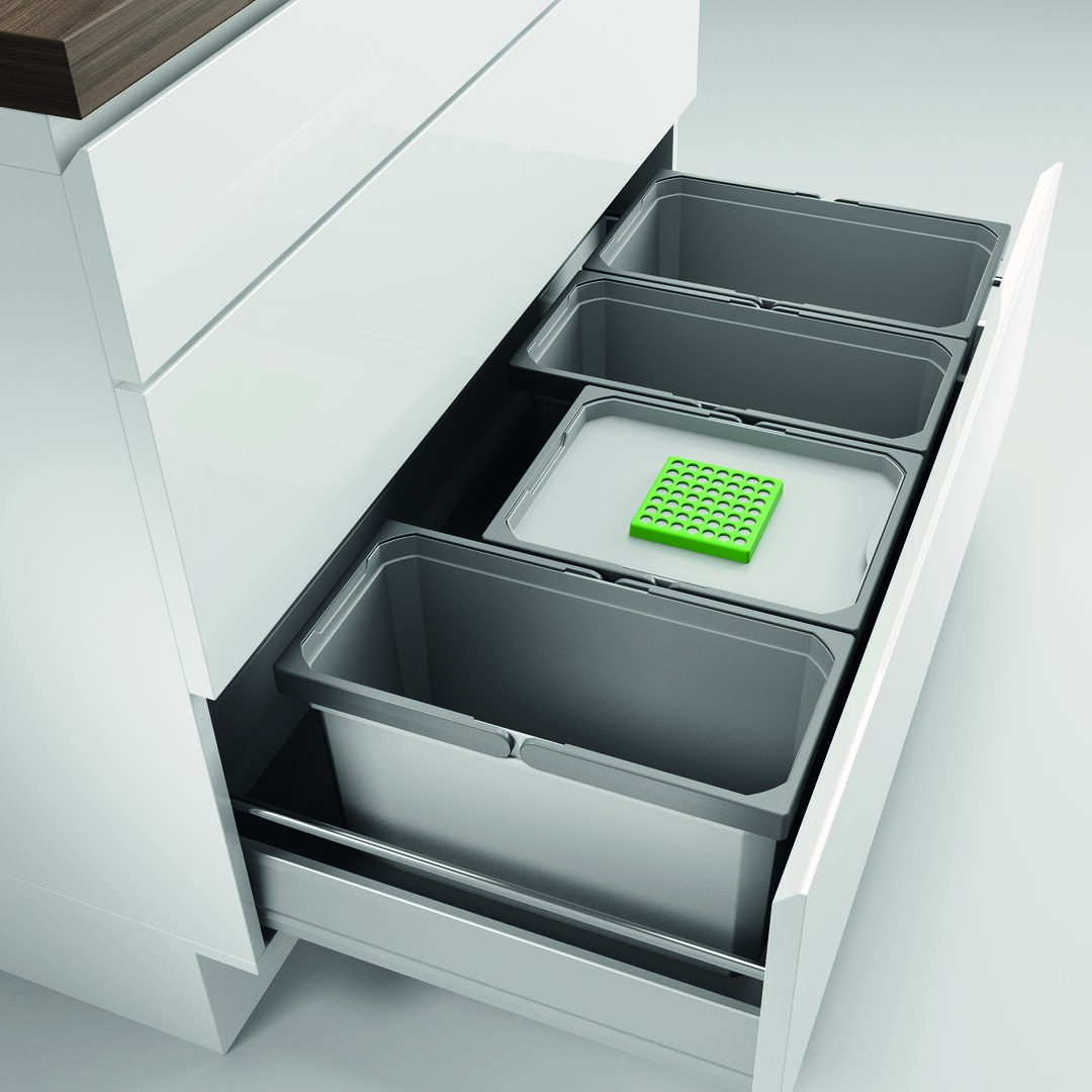 For installation on existing pull-outs. With non-slip inlay mat, fixed complete lid and single bio-lid.