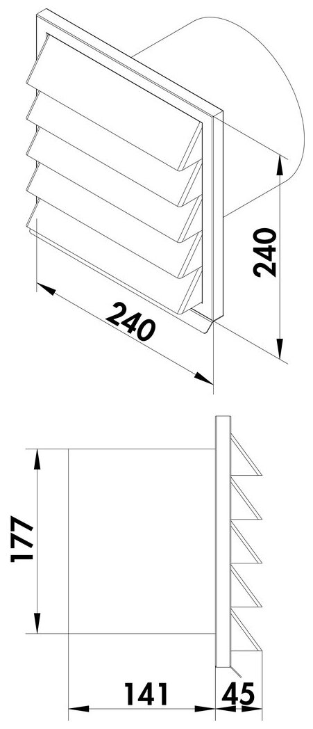240 x 240 mm with backpressure shutter for connection to round pipe.