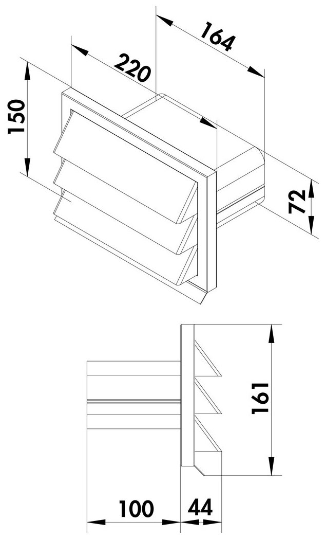 210 x 140 mm with backpressure shutter for connection 169 x 77 mm to COMPAIRĀ® flow 125.