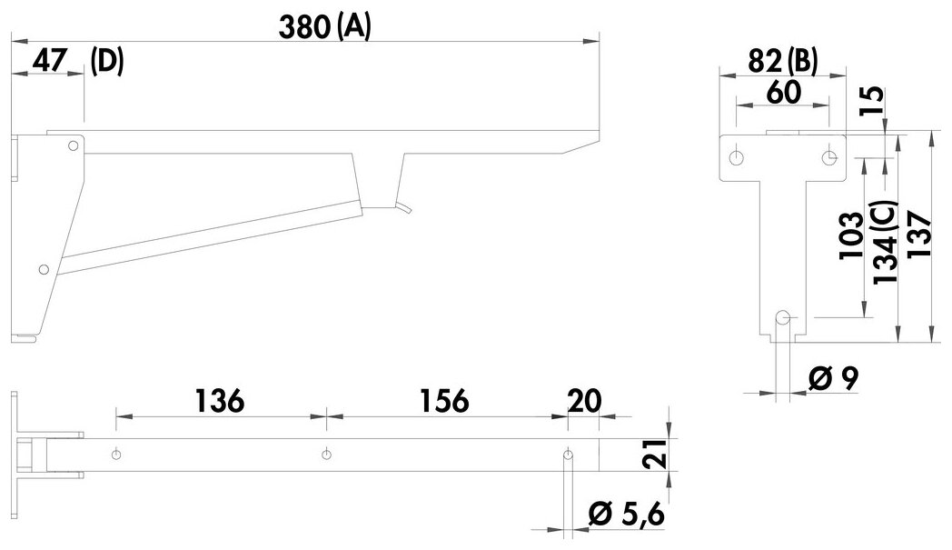 Folding console, A 380, W 82, C 134, D 50 mm