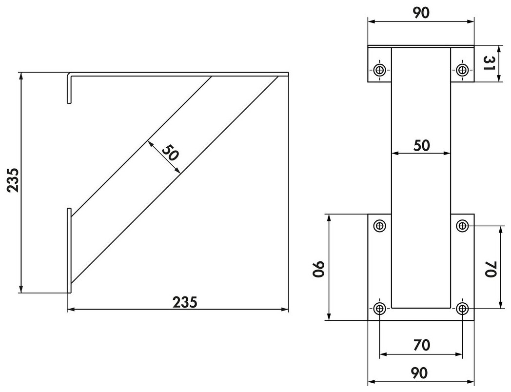 — max. load per pair approx. 60 kg given even distribution, max. spacing of the consoles of 900 mm and max. projection of the plates of 250 mm