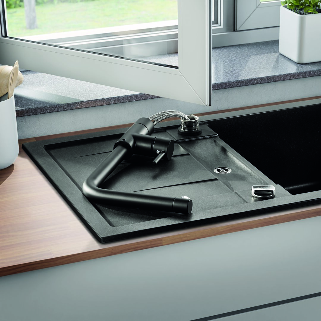 The Arco 5 kitchen mixer from the Linea series scores with elegance, harmonious curves and high functionality. It presents itself in a slim, unadorned design that integrates itself filigree and unobtrusively into any kitchen design. As a special feature, it has a removable body that can be detached from the base and folded down in one easy step. In this way, the sink unit can be realised directly in front of the window: It can be opened completely without the fitting getting in the way. At the same time, the window fitting offers a flexible swivel range of 360°. It is conveniently operated via a handle on the side. The sink fitting is also convincing in terms of quality. High-quality materials and durable, easy-care coatings are used. There is a choice of different versions to meet all requirements for modern surfaces. A precision cartridge with ceramic seals is also integrated. To ensure that the single-lever mixer matches the technical equipment, the model is optionally available as a high-pressure fitting or a low-pressure fitting. It can be installed directly in the tap surface of the sink.