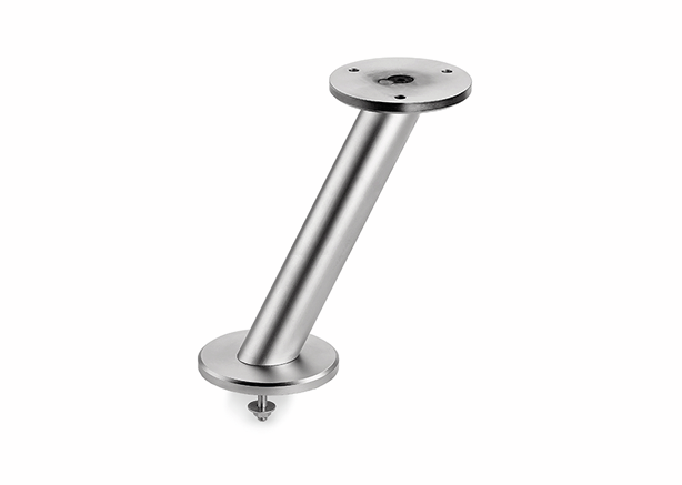 The sloping console support type 42 can be used to create a trendy countertop for the kitchen. It is used to create a raised dining area on the kitchen worktop. Its elegant round tube design with a thickness of 35 mm fits timelessly into many furnishing concepts. The console can be combined with any wooden counter top. Thanks to the integrated mounting plate, it can be screwed to the wood from below. Alternatively, a glass table top can be used. A glass adapter disc from the accessories is required for stable adhesive mounting. A screw fastening for the base is also integrated. The support bracket is made of stainless steel and is characterised by its high load-bearing capacity of up to 60 kg. This load capacity is achieved in pairs as well as with an even load distribution. The support is available in different heights. It is mounted directly on the worktop.