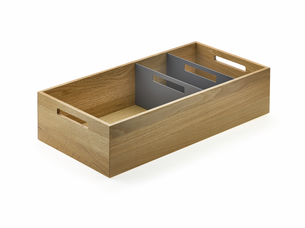 The Modify U-divider with handle makes it easier to store small parts in the kitchen drawer. It matches Box 1 and Box 2 from the STOREX® Modify drawer system and is easy to place in the desired position. In this way, the available storage space can be divided flexibly. Thanks to the integrated handles, the drawer organiser can be removed or moved effortlessly. The accessories are made of powder-coated metal with a high-quality finish.