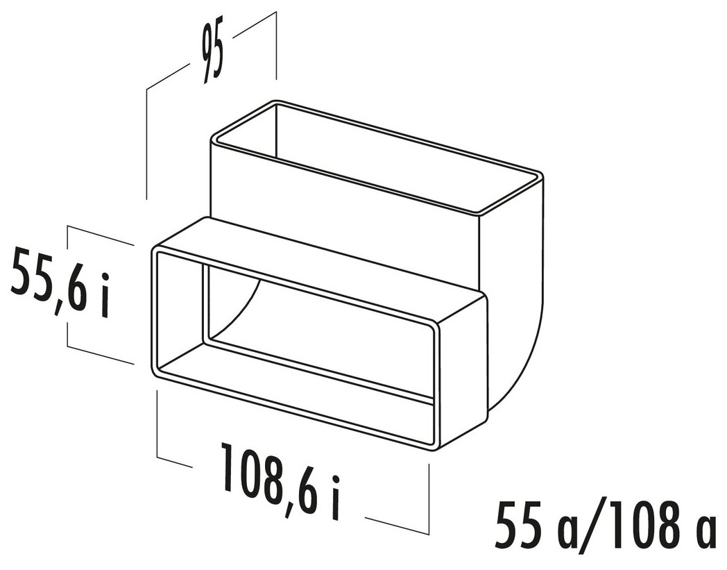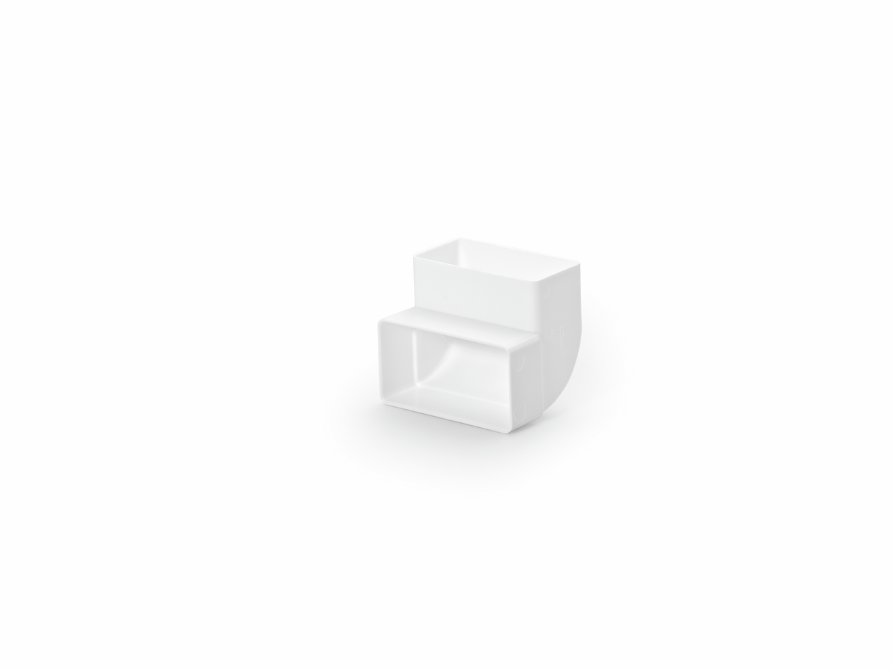 The vertical COMPAIR® norm N-RBV 100 pipe bend is used to connect flat duct pipes in the exhaust or supply air installation for the kitchen. The 90° angle enables a change of direction. The ventilation fitting combines uncomplicated plug-in installation and reduces flow losses within the exhaust air system thanks to a secure connection. It is equipped with a socket moulded on one side and offers the connection size 108.6 x 55.6 mm.