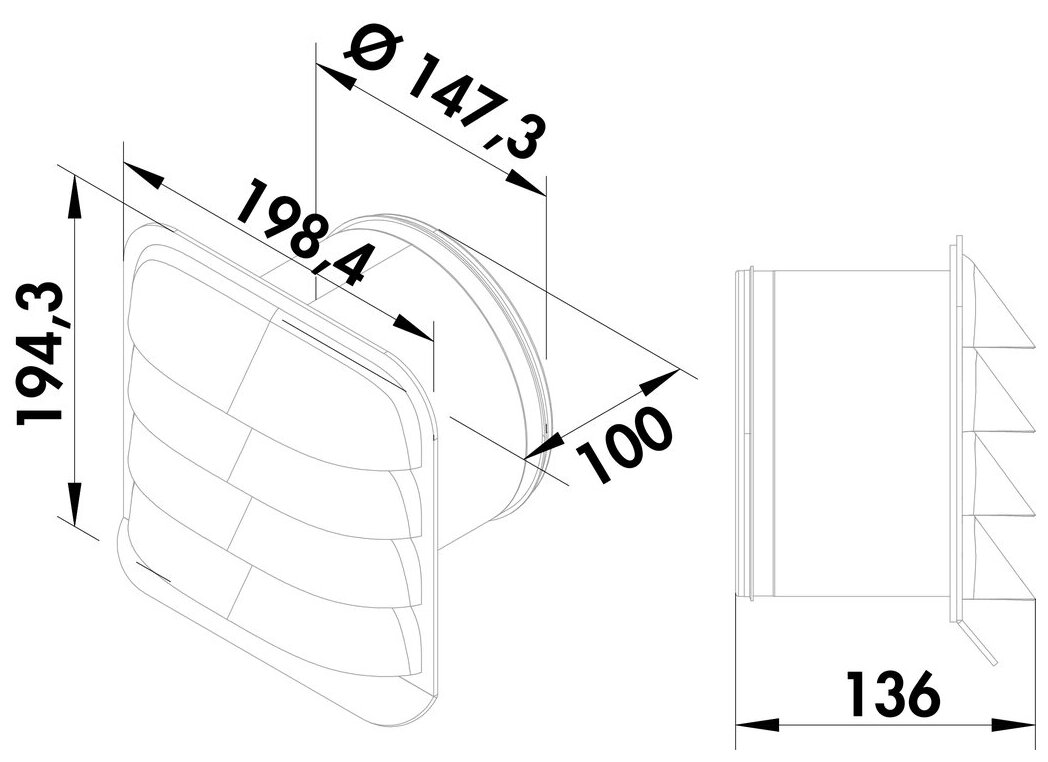Without backpressure shutter for connection to round pipe.