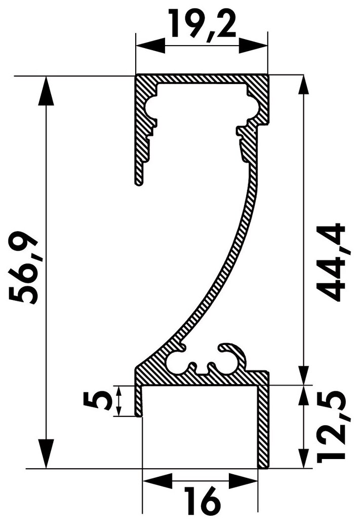 Top-mounted lamp for rear walls. Aluminium LED profile, can be shortened every 25 mm, no visible LED points.