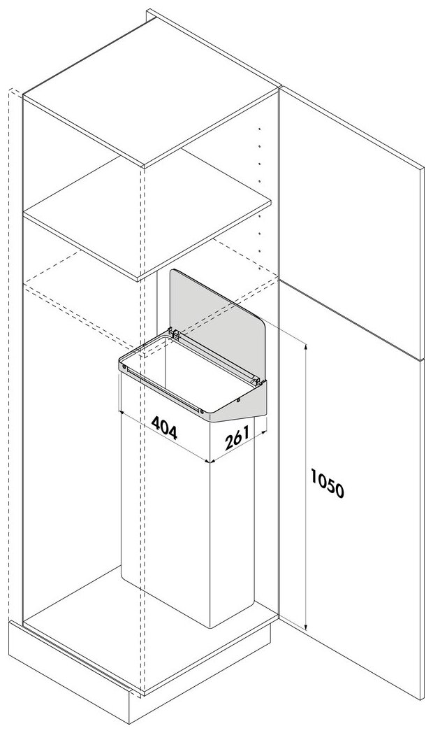 A practical addition to kitchen cupboards: the Tidy bin liner holder including cotton bag. A hanging device integrated under the lid facilitates handling to dispose of the rubbish produced in the household and to restock the bin liner holder. It is manufactured in a solid quality from powder-coated sheet steel with easy-care surfaces. Only two screws are needed to attach it to the inner or outer cupboard wall at a recommended height of 1050 mm. Within the STOREX® Tidy tidy system series, many other built-in modules are available for tidy kitchen cabinets.