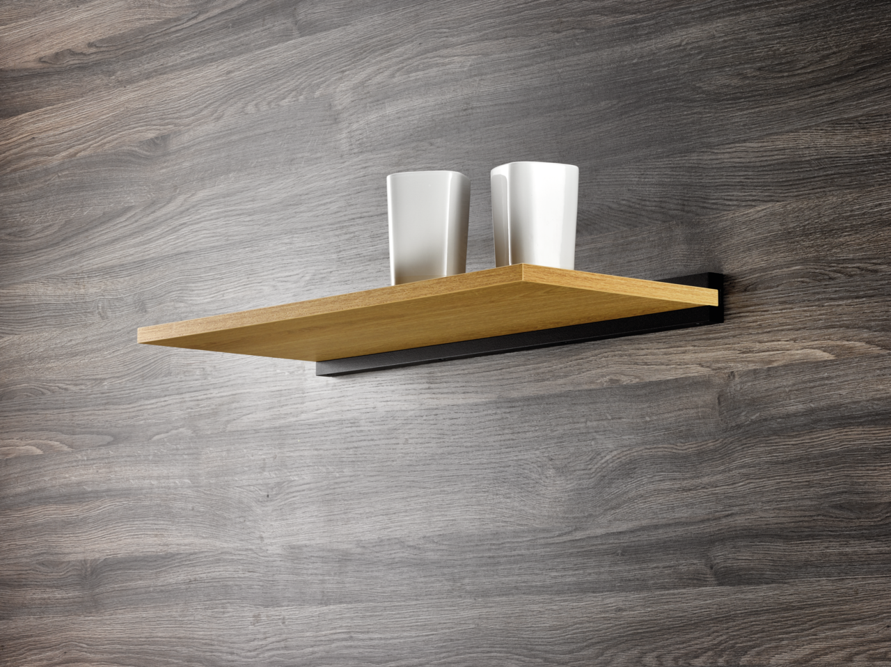 Shelf support. Two-piece, made of aluminium, powder-coated with fine structure.