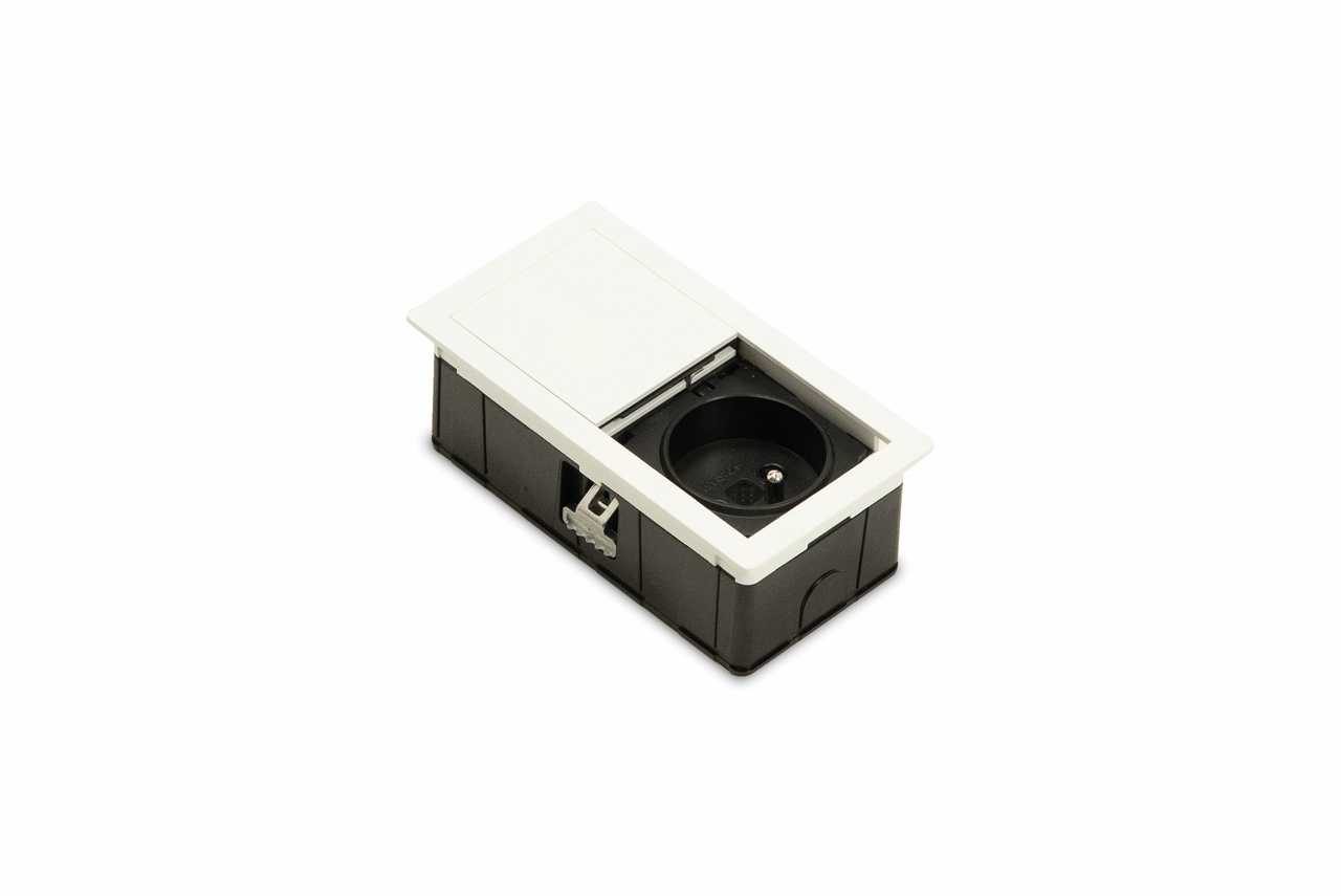 The CON-AKTIV® Plaza 1 built-in socket convinces with a flush-mounted housing that opens up numerous possibilities for use. The design of the modern socket element is stylishly enhanced by a sliding cover. It is available with different finishes to match personal ideas and the existing kitchen architecture. Thanks to the very low installation depth, the single socket can be installed at any desired location within the kitchen unit. This includes the worktop as well as front panels and the side wall of a kitchen cabinet. In accordance with protection class IP54, the socket outlet is resistant to splash water. The extra safety is provided by the increased protection against accidental contact. The complete package includes a loose Schuko plug and an extra-long mains connection cable.