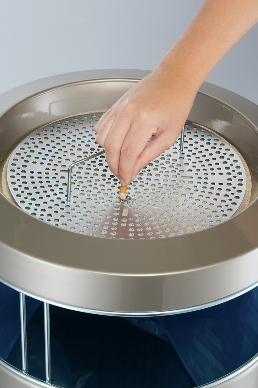An elegant eye-catcher for shopping arcades, entrance areas, airports or restaurants. With ashtray on top, incl. sieve insert.