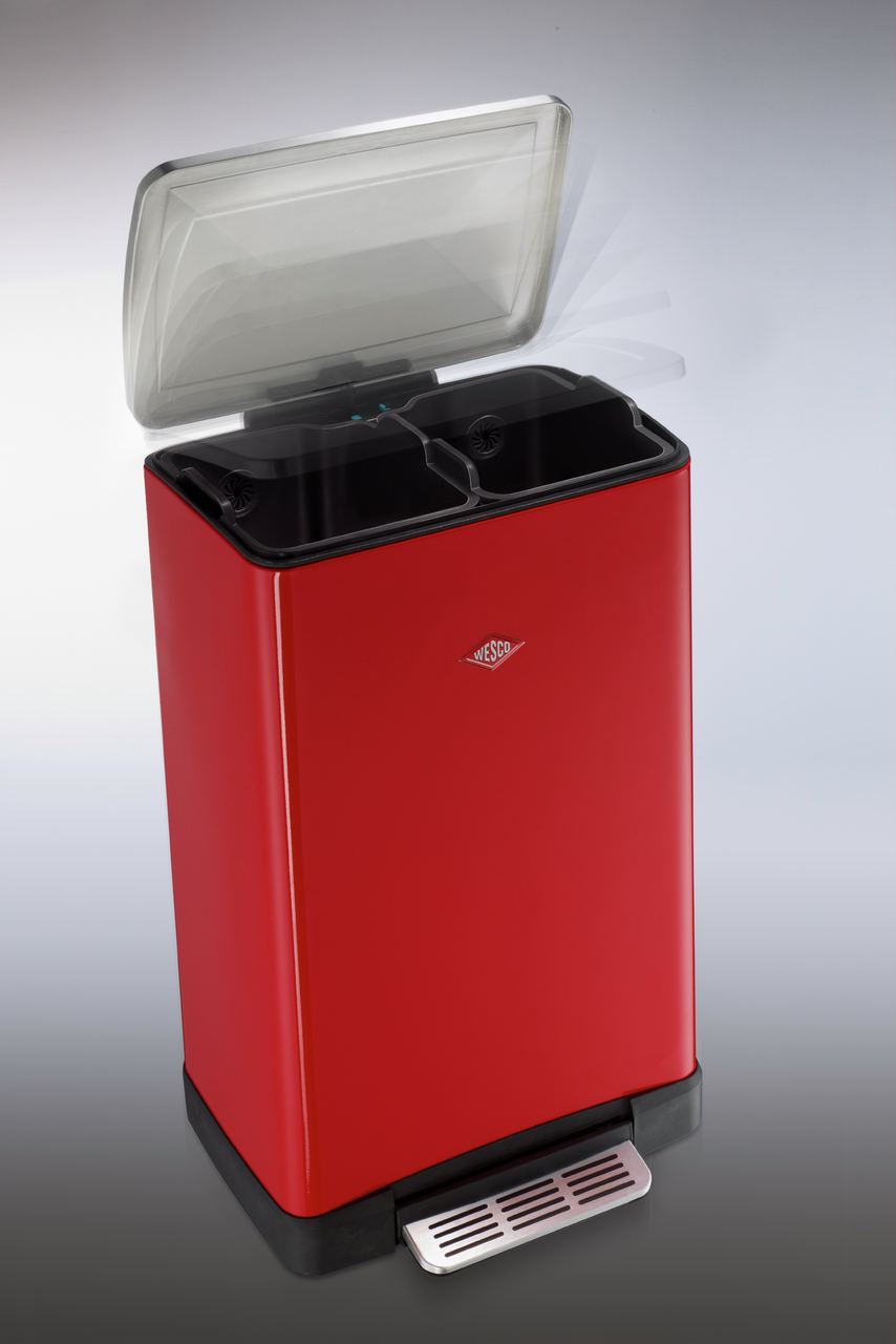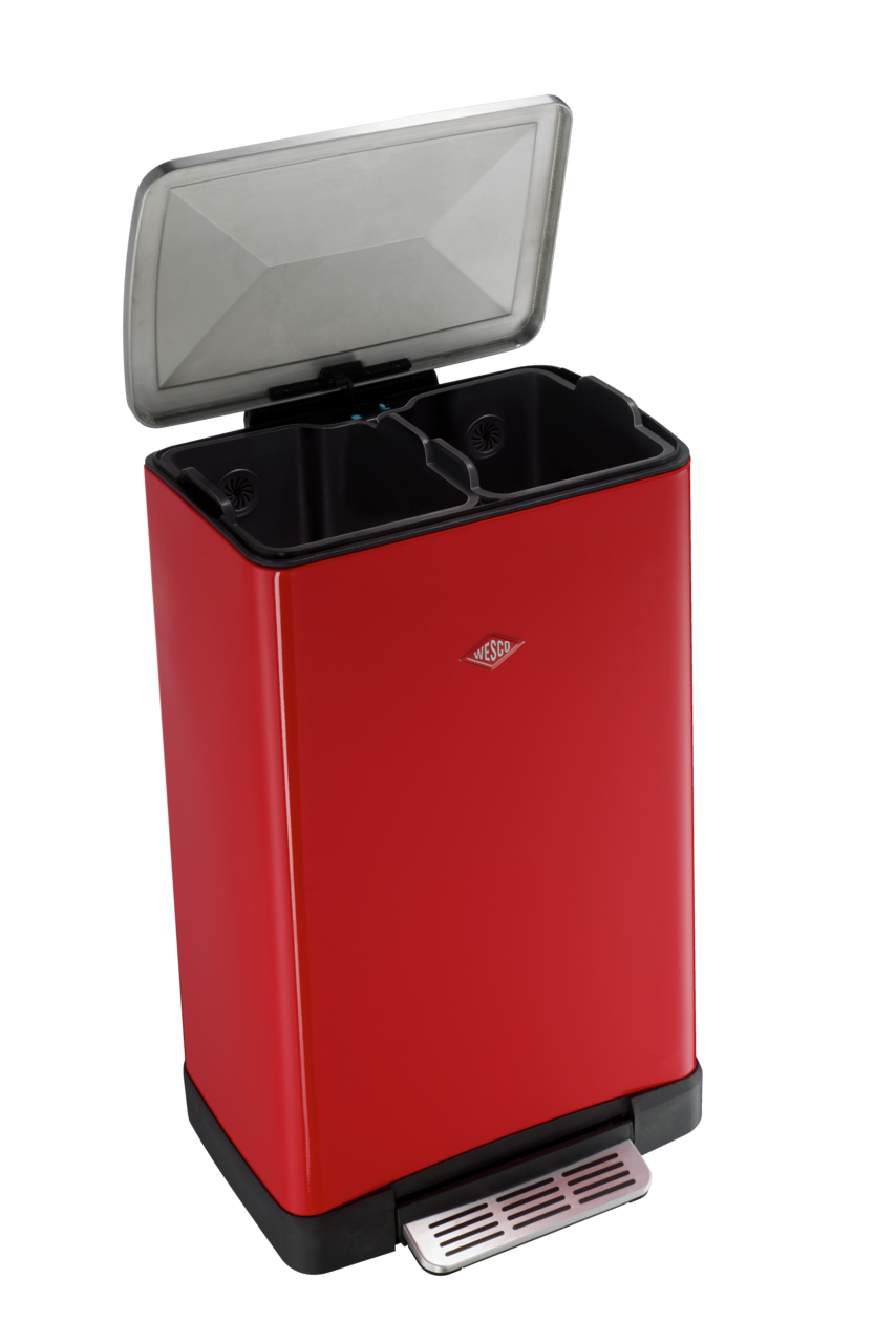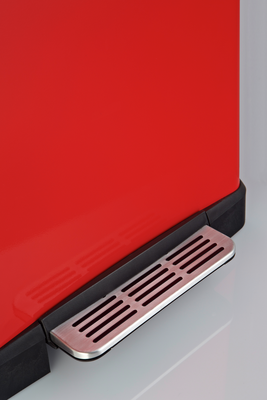 The pedal waste collector has two separate 18-litre inserts that you can fill as required with recyclables, paper, plastic or organic waste. The stainless steel lid closes almost silently thanks to a built-in damper and seals the waste securely. The lid can also be locked in the open position. A practical attachment option for bin bags on the plastic inserts prevents the bag from slipping out so that nothing can spill. The generous stainless steel foot pedal guarantees easy operation and free hands for convenient waste disposal. The Big Double Boy is a great waste separation system with a stylish look.