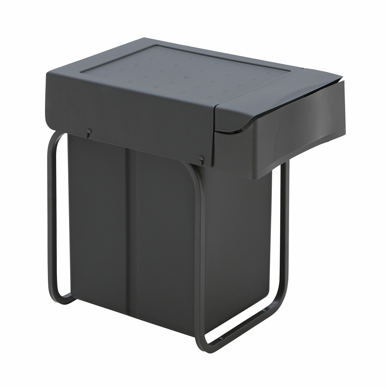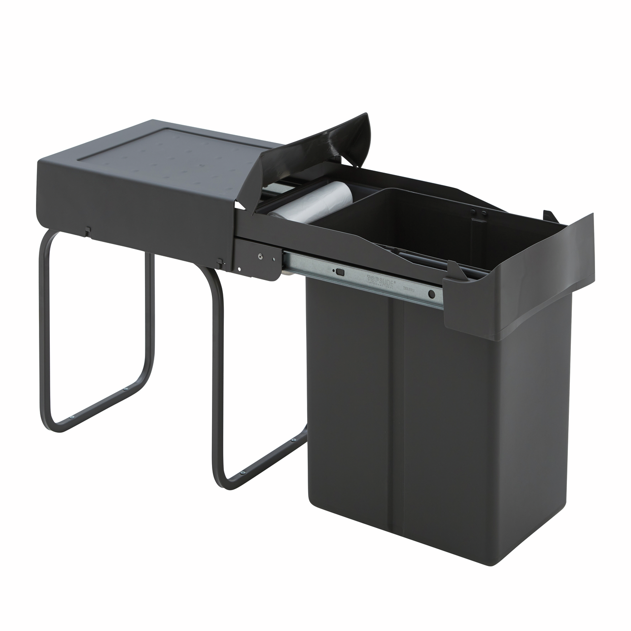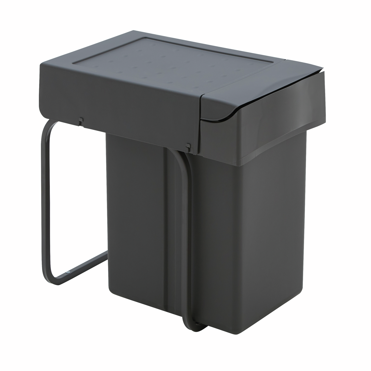 Pull-out built-in waste bin with a 21 litre plastic insert and a practical storage tray. The built-in waste bin is space-saving and can be easily installed in the kitchen base unit.