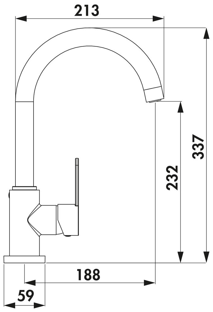 Single lever faucet. With swivelling outlet, side lever, ceramic cartridge and scald protection.