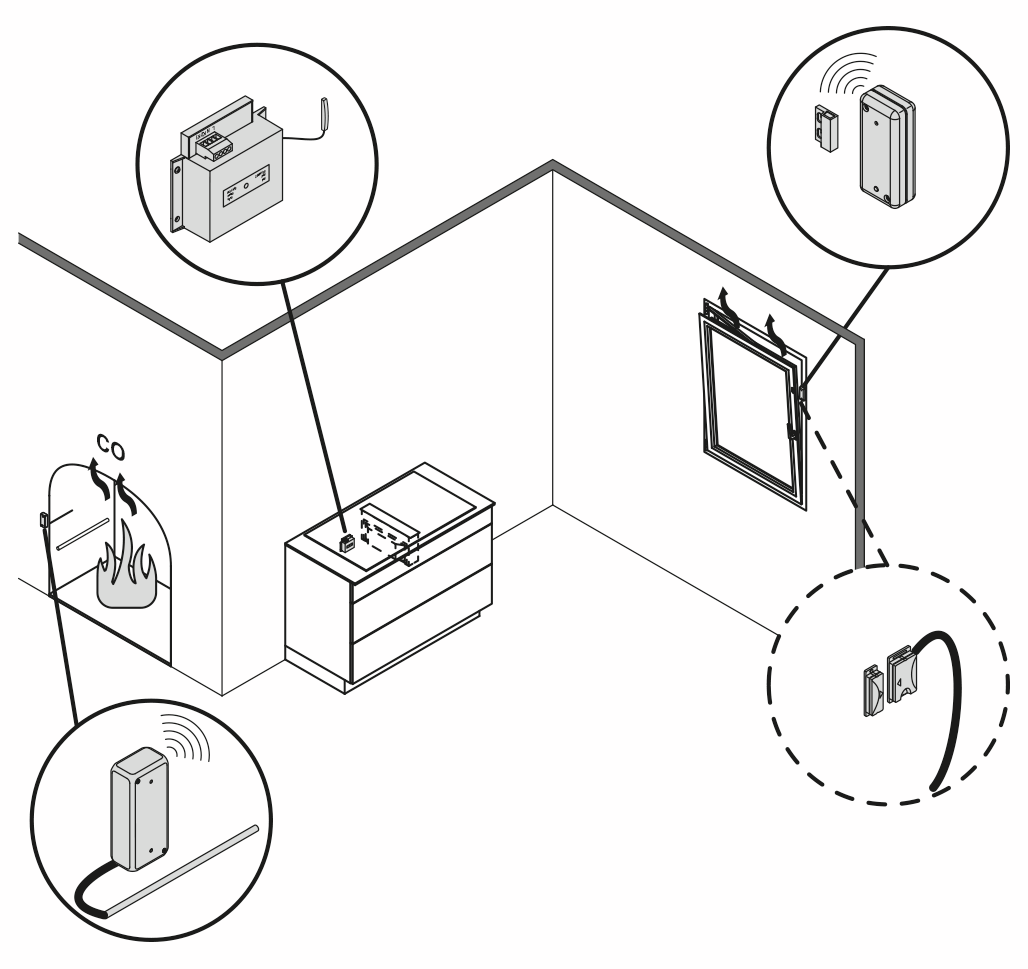 The COMPAIRĀ® window contact switch for trough ventilators only allows the exhaust air system to be used when the window is tilted or completely open. To determine this state, the two-part contact switch is attached to the window frame as well as to the window sash. The built-in receiver integrated via the fan motor supply line receives the relevant information wirelessly via radio signal. Since the electrical system of the trough ventilator or the extractor bonnet is interfered with, the warranty conditions of the respective manufacturer should be taken into account before use. With the help of an external antenna, difficult reception conditions in the kitchen can be overcome, for example, if the unit is installed under a stainless steel cover. The complete package includes the batteries required for operation, including battery monitoring. More safety is provided by the radio monitoring system, which is also integrated. In the case of a trough fan with BLDC motor, the radio exhaust control can be integrated separately via the third phase, as the required connection is often already available.