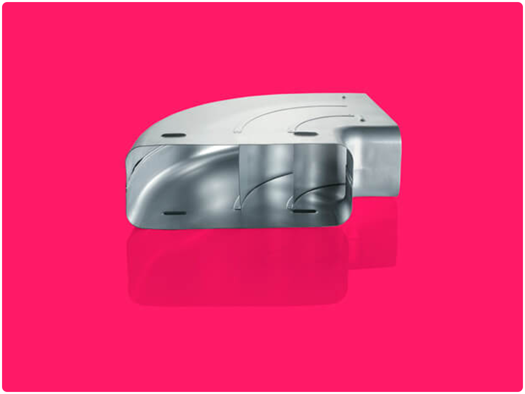 COMPAIR STEEL flow® delivers the same perfect flow results as Naber’s proven COMPAIR® flow. Guide elements integrated into the round bends ensure aerodynamically optimal flow and pressure losses that are 80 percent lower than with standard ducts.