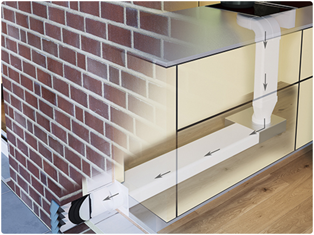 For you as an architect, kitchen planner or fitter, this means: as long as you lay the exhaust air duct inside a flat or house of up to 400 square metres and route it outdoors from there, you can use COMPAIR® flow. This regulation also applies to non-residential buildings.