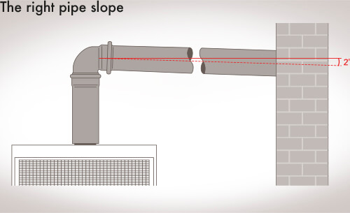 Horizontal ducts leading to the outside should have a gradient of two percent towards the wall outlet to remove condensation. That’s two centimetres per metre.